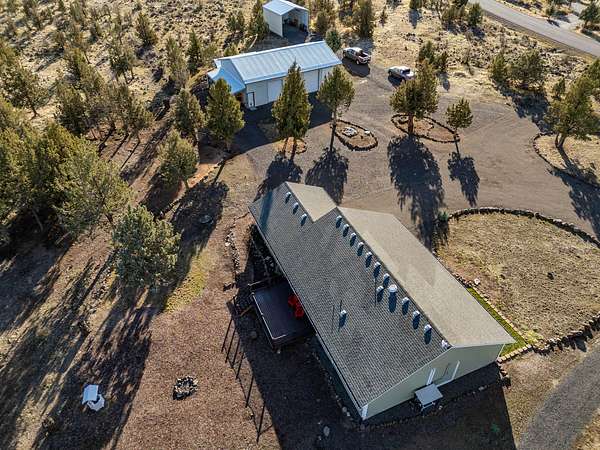 Amazing setting 14.42-acre property off paved road in Ironwood Estates offering a rural feel w/privacy, functionality & breathtaking Cascade Mountain Views. A gated circular driveway welcomes you to ample parking & double attached garage. Well-maintained home built in 2004, 1,704 sqft, 3 bedrooms, 2 bathrooms, & large open kitchen w/ eating bar, nook, & space for formal dining or family room. Enjoy the outdoors on expansive open Trex deck w/ fire pit & stunning snow-capped mountain views. Upgrades include four newer mini-split units & interior/exterior paint. The home also has whole-house ventilation system. Property features a fully insulated 1,500 sqft shop equipped w/ 240 power, half bath, & four spacious bays--perfect for RVs, trailers & all your gear. Additional amenities include a large RV cover w/ concrete foundation, covered dog run & storage shed for added utility. Fully fenced with five separate areas, ideal for horses and outdoor enthusiasts.