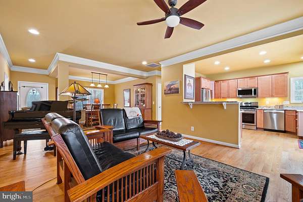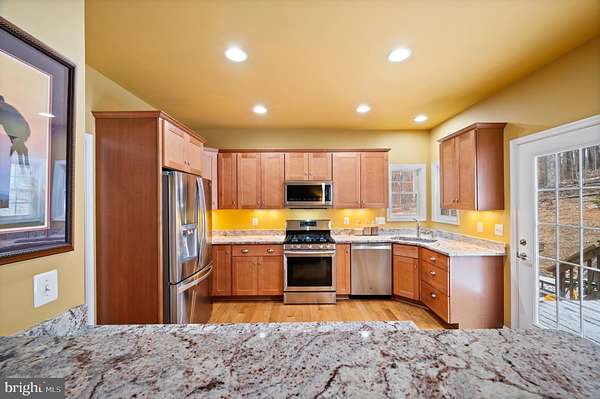Your private & peaceful oasis awaits with HIGH SPEED XFINITY INTERNET! This beautiful home greets you with a welcoming front porch, spacious rear deck with amazing views, a stocked pond, stream and unrestricted land with hunting potential and no HOA. This beautifully maintained 4-bedroom, 3-bath home offers comfort, style, and sweeping mountain views from every angle. This property is in excellent, better-than-new condition and features hardwood flooring, ceramic-tile baths, upgraded crown molding, enhanced trim, and tray ceilings throughout. The kitchen includes a breakfast bar, granite countertops, and stainless-steel appliances, open to the family room with a cozy gas fireplace. The finished natural walkout basement provides a full bath and a 4th bedroom-ideal for guests or multigenerational living. Systems include water softener, well and septic, a buried leased propane tank with Valley Energy, Lennox electric and propane furnace with air conditioning maintained by Air Serve's $16/month filter service. Outdoor security cameras are located at the driveway and back door; all interior cameras are not hardwired. This home blends thoughtful upgrades, peaceful surroundings, and modern convenience-an exceptional opportunity in a stunning mountain setting. ***Please note that the Tiffany light shade in the main bedroom does not convey.