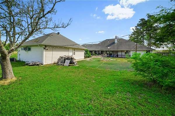 2.03 acres in Franklin with two homes under one roofline, a separate heated and cooled outbuilding, and a setup that fits extended family, guests, or rental use. The main home offers 2,107 sqft with 4 bedrooms and 2 baths. Attached under the same roof, the guest house adds 576 sqft with 1 bed and 1 bath. Both were built in 2002. There's also a 750 sqft outbuilding with heating and cooling plus a full bathroom-ready for a game room, office, or extra living space. Inside the main home, you've got a good layout with a fireplace, formal dining room, and space where it counts. The outdoor area is what stands out here. Turf and lighting are already set up for evenings outside, and the turf came off of Hedrick Field (Franklin High School) used during their state championship runs. Raised beds are in place for a garden or flowers. Behind the house, there's plenty of useable space for 4H or FFA projects, animals, or adding a shop. Located in Franklin Independent School District and about 40 minutes to Bryan and College Station, you get a small-town setting with an easy drive to town. If you're looking for multiple living spaces and room to use, this one is worth a look. Call to schedule a showing.
