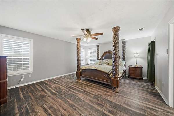 - Ceiling Fan, Plantation Shutters, Raised Ceiling