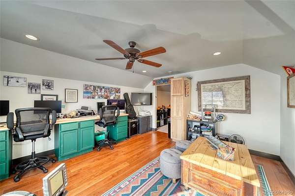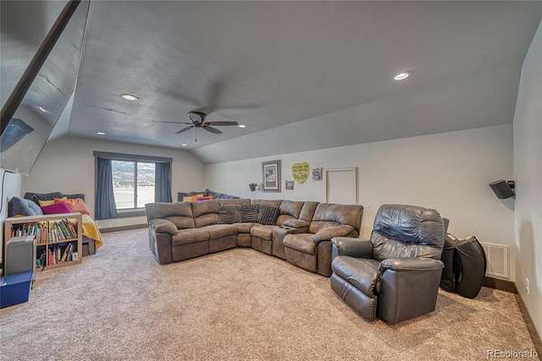 Exterior highlights include a south-facing fenced garden and dog run, additional fenced yard with hot tub pad, flagstone entertaining area, deck, and covered back porch with easy access to a basketball hoop. The acreage provides ample space for future outbuildings, or expanded landscaping. Beautiful wood exterior finishes and an oversized three-car garage complete this private luxury offering in the heart of the Upper Arkansas Valley.