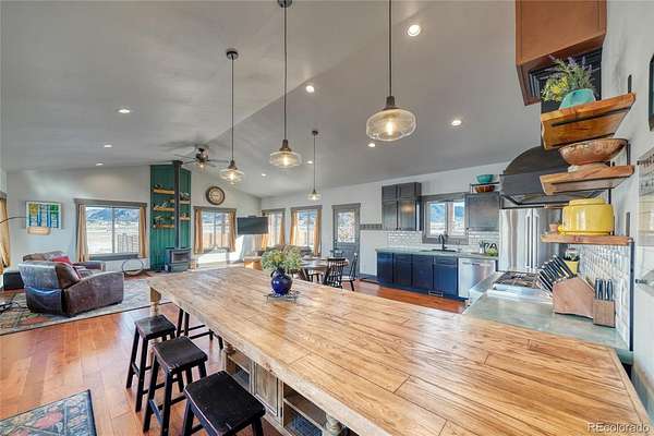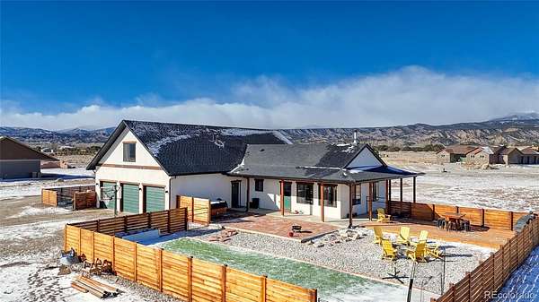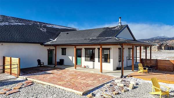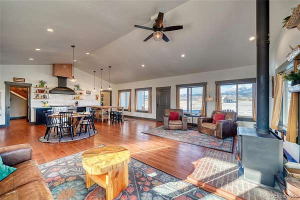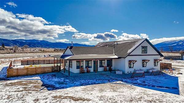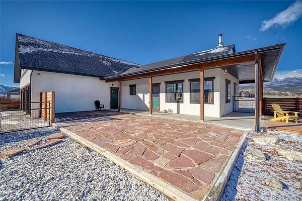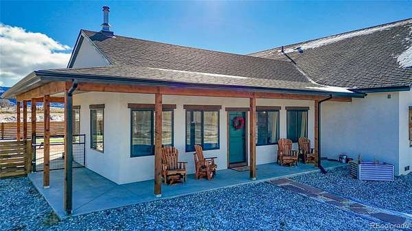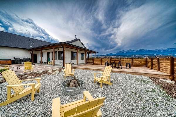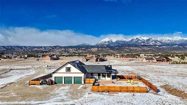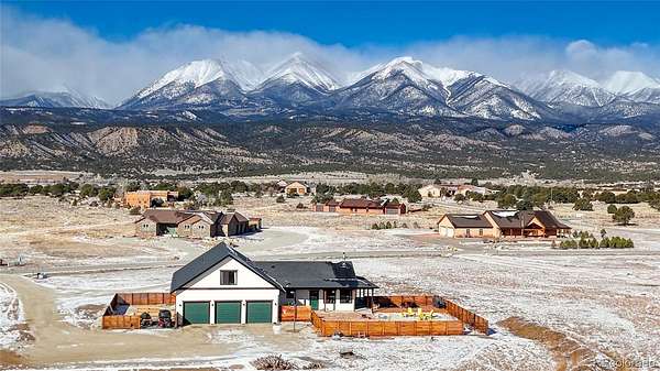 Set on 2 private acres, this 4-bedroom, 3-bath modern farmhouse offers 3,000+- sq ft of refined Colorado living. Vaulted ceilings and expansive windows frame panoramic views of Mt. Shavano and Mt. Antero while filling the home with natural light. The open-concept great room, anchored by a wood-burning stove, flows seamlessly for elevated everyday living and effortless entertaining.