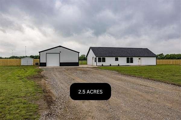 Charming New Construction on 2.5 Acres with Shop & Storage. Modern Country Living at Its Best! Escape to peaceful country living with this beautifully crafted new construction home, situated on 2.5 acres with stunning views, modern finishes, and functional outdoor spaces. This move-in ready property offers both comfort and versatility, complete with a 10x16 storage building, and an impressive 30x 30 fully insulated shop featuring HVAC, a private bathroom, its own hot water heater, and endless possibilities for work or recreation. Step inside the home and experience an open-concept layout with sleek marble countertops, tasteful fixtures, and plenty of natural light throughout. The kitchen is equipped with all appliances included, making your transition seamless. This home combines timeless rural charm with up-to-date tech, including Starlink internet already installed for high-speed connectivity. Whether you're looking to build a hobby farm, set up a home business, or just enjoy open skies and fresh air, this property delivers the best of both worlds: rural serenity and modern convenience. Don't miss your chance to own this slice of countryside paradise! Additional 1.25 Acre tract available $25,000