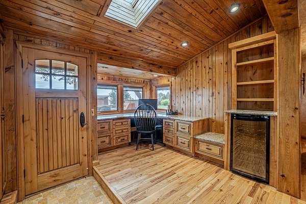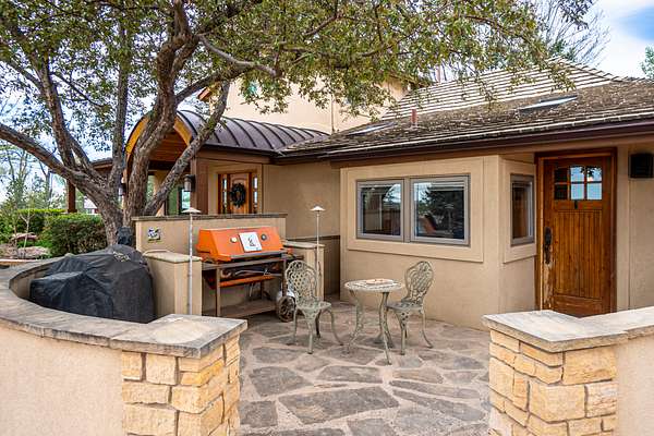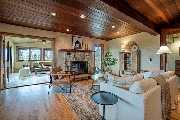 The home features 3 bedrooms and 2 bathrooms with a warm, inviting interior that includes wood flooring and a wood-burning fireplace—perfect for cozy evenings. A spacious mudroom adds everyday practicality, while an office nook provides a convenient workspace. Step outside to enjoy thoughtfully designed garden and seating areas, all positioned to take in sweeping views of the Front Range, including Longs Peak.