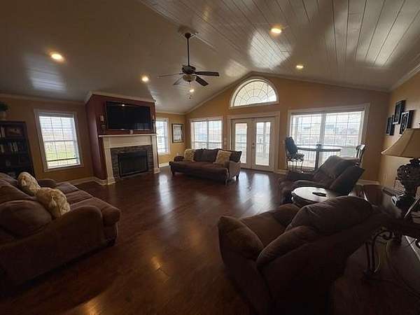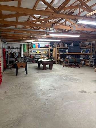 Sitting on 1.98 acres this house has been updated over the years. House offers plenty of room for everyone. 4 bedrooms that include 2 primary suites. Large bonus room upstairs with full bath. Office/Workout room. 2 living areas or family rooms with fireplaces in each one. Downstairs offers one of the primary suites with large walk in closet and large safe room. Outside offers a covered patio overlooking the swimming pool and pool house. Flagstone patio with firepit. 1500 sq ft pole barn with 3 garage doors. Entire backyard is fenced with privacy, ornamental and vinyl fencing. Roof is approximately 5 years old. Rianna on demand hot water installed 2 years ago. House was added on in the 90's. New vinyl pool liner is needed. Will include $8500 credit at closing for new pool liner.