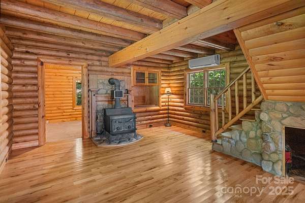 Escape to your own private retreat with this log cabin-style home nestled on 24 picturesque acres of countryside. Perfectly suited for nature lovers, equestrians, or those seeking a serene lifestyle, this unique property elicits a rustic charm in a majestic setting. A rare and valuable feature, the natural spring on the property adds to the charm and sustainability of your retreat. A barn and established horse trails make this property ideal for horse enthusiasts. Ride straight from your property through miles of wooded trails. Enjoy a tranquil large pond for fishing or relaxing, acres of mature forest, and open meadows - perfect for hiking, gardening, or even expanding your homestead dreams with multiple building sites. This one-of-a-kind property offers the best of both worlds. Whether you're looking for a weekend getaway, a hobby farm, or a country lifestyle.