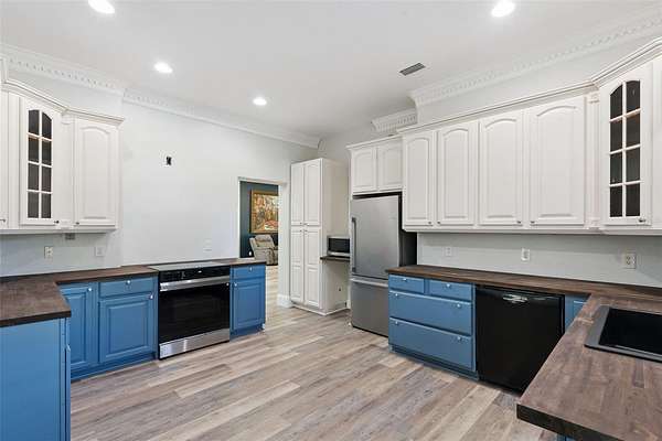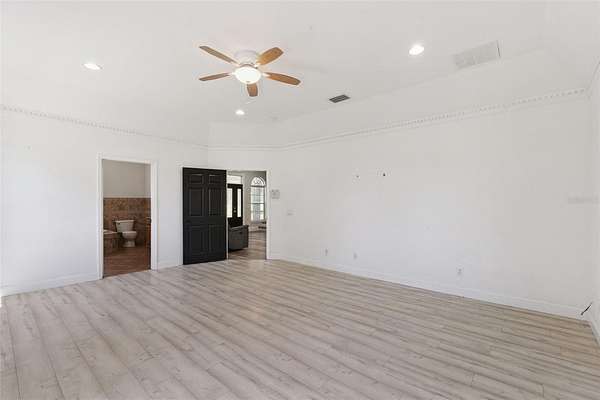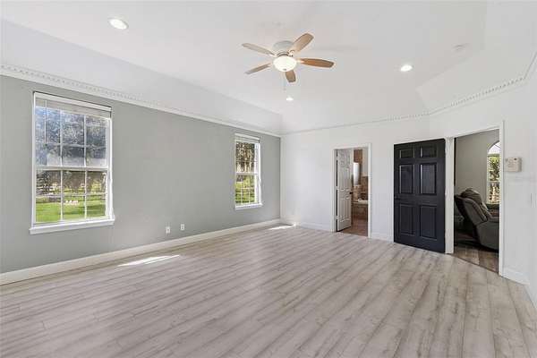 - Cathedral Ceiling(s), Ceiling Fans(s), Crown Molding, Eat-In Kitchen, L Dining, Primary Bedroom Main Floor, Walk-In Closet(s)