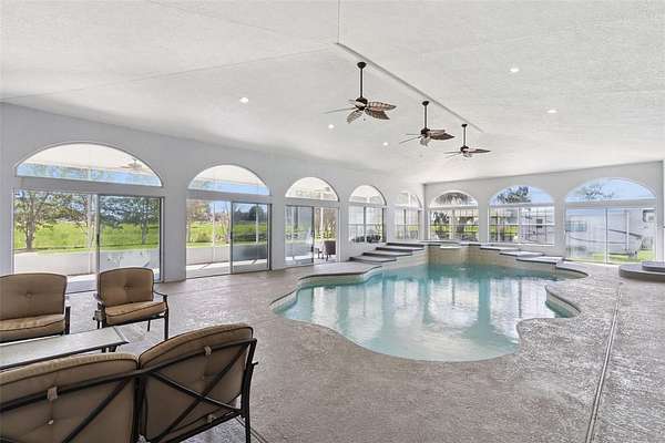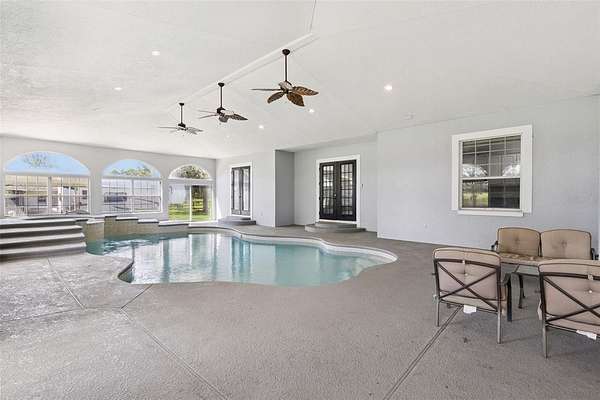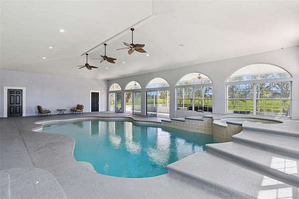 Short Sale. A rare opportunity to own 20 acres of land in Groveland Farms, bring your horses and cattle to this newly updated property !! This one of a kind home offers over 4,000 sqft of endless opportunity. As you enter through the gates, you will begin to appreciate the magnitude of this property in such a idyllic setting. This home offers 3 Bedrooms and 4 Bathrooms, a spacious family room, Dining room and a newly updated kitchen with butcher block counter tops. The primary suite is located downstairs, with dual vanities, shower and separate tub and French doors leading to the pool area. Upstairs we have a large bonus/media/office room, two generous sized bedrooms and a newly remodeled modern bathroom. Off the family room are French doors leading to the huge indoor 34,000 gallon swimming pool and spa, this fully enclosed space is 1,400 sqft !!! All year round swimming no matter the weather outside, perfect for exercise or therapy. Off this space is a large screened in patio and full bathroom. The balcony and roof top patio offers spectacular views and a sunset to die for, whether your entertaining or just taking in the vast views, you truly are the king of the castle !! A oversized 2 car garage offers plenty of space for all your toys. This property offers country living at it's finest and really must be viewed in person to appreciate it's potential including 2 ponds.