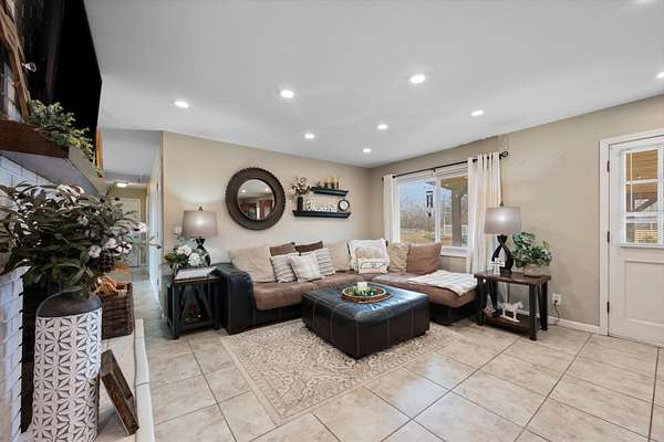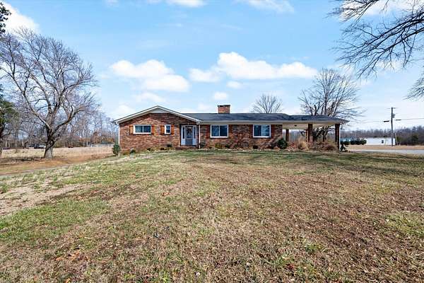 Welcome home to this beautiful all-brick, one-level home with a full basement, perfectly tucked away far off the main road for added privacy and serenity. Sitting on 3.4 gorgeous acres, this property offers space to breathe and room to enjoy the outdoors. Inside this 3bd. 2 bath home, you'll find no carpet--only tile and luxury vinyl plank flooring throughout, making this home both stylish and easy to maintain. The kitchen comes complete with all appliances remaining and features a convenient island, perfect for gathering or meal prep. Home has 2 separate living areas, one with a fireplace and bookshelves. Roof and HVAC are less than 5 years old.