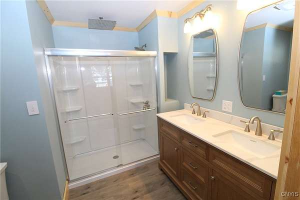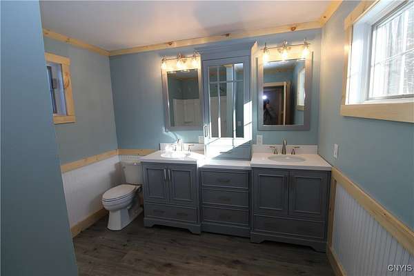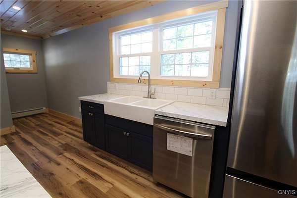 Adirondack Sanctuary: Where Craftsmanship Meets Wilderness Nestled upon four magnificent acres just beyond the threshold of the storied Adirondack Park, this meticulously renovated residence represents that increasingly elusive convergence of superior construction and untamed natural splendor that discerning buyers dream of discovering. Upon entering, the artisanal devotion becomes unmistakably apparent. Custom pine millwork cascades throughout the interior, its warm honeyed tones complementing freshly installed drywall and impeccable flooring that whispers of quality underfoot. The bespoke kitchen stands as a culinary theater of thoughtful design, while two custom-appointed bathrooms demonstrate the same uncompromising attention to detail that permeates every corner of this 2,148-square-foot haven. Three generously proportioned bedrooms offer sanctuary after days spent enjoying the surrounding wilderness, and the massive basement-a veritable kingdom unto itself-presents extraordinary potential for whatever your imagination conjures. Above, a commanding metal roof provides decades of worry-free protection against whatever Mother Nature orchestrates. The outdoor experience rivals the interior's excellence. Expansive composite decking creates an ideal stage for morning contemplation, while a custom gazebo complete with patio furniture beckons evening gatherings. The thoughtfully fenced yard includes a dedicated pet enclosure, and a substantial storage building accommodates recreational equipment. For winter wonderland enthusiasts, snowmobile trails literally commence at your doorstep-head outside and adventure awaits. A whole-house generator ensures comfort regardless of conditions. Beyond lies Woodhull State Forest, the enchanting village of Old Forge, McCauley Mountain's slopes, and the legendary Fulton Chain Lakes. Whether your passion lies in crystalline winter pursuits, summer lake life, woodland trails, or simply existing in harmony with extraordinary landscape, this remarkable property invites you to discover what authentic Adirondack living truly means. Schedule your private showing and begin writing your own wilderness chapter.