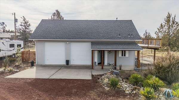 Experience the ultimate high-desert retreat! Perched on 3.46 flat, usable acres, this charming 2-story home offers the perfect blend of cozy living and expansive outdoor freedom. Whether you're looking for a peaceful primary residence, a weekend getaway, or a property with massive potential for hobbies & gear, this is the one you've been waiting for. The interior features a perfectly positioned kitchen w/ stainless appliances & a cozy living room anchored by a wood-burning stove. Large sliders lead to a covered patio, while the upper level boasts a newly added deck with uninterrupted Cascade Mountain views. The property includes a versatile bonus room/2nd bedroom, an oversized garage w/ extra-tall doors, workspace, & laundry. Perfectly set up for hobbies, there is plenty of space for RV/Boat storage and/or other outdoor toys! Whether you're watching the sunset while sitting on the upper deck, or utilizing the expansive acreage, this property offers the ultimate Central Oregon escape!