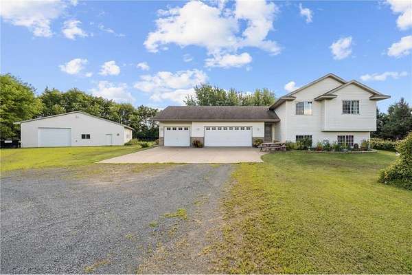 Set on two parcels totaling 12.22 acres, this 2002 split-entry sits at the end of a long private drive with a serene mix of woods, fruit trees, and open tillable ground. Ideal for a hobby farm and also offing the option of generational living with add'l building space next door on the extra land! Inside, the layout features a patio door and deck off the dining for an evening BBQ, cozy gas fireplace in the lower-level walk out family room, a large mudroom off the entry, next to the oversized attached 3-car garage. The real star of the show is the 40x60 heated, insulated dream shop with 12' sidewalls and a 10' door--ready for an in-home business, woodworking, mechanical projects, or serious toy storage! Plenty of room for gardens, animals, and outdoor play. Near Sand Lake and Dancing Dragonfly Winery, this hard-to-find package offers acreage, privacy, and versatility--all minutes from conveniences. If you're seeking space, shop capacity, or a start to your country ambitions, this is the one!