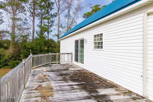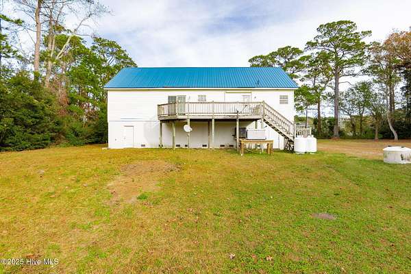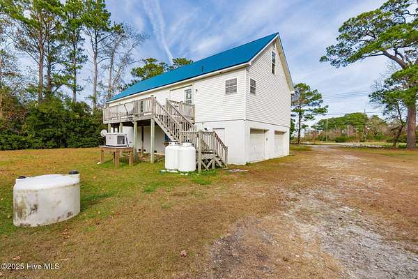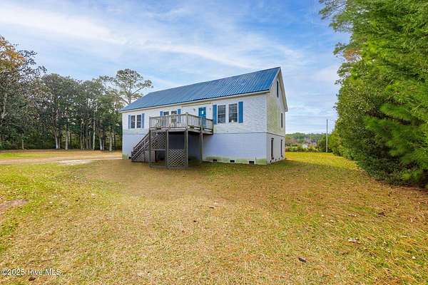 A unique Beaufort offering with room to breathe, build, and make it your own. This elevated home sits on a spacious lot and features an open main living area with fireplace, generous natural light, and a functional layout ready for personalization. The primary suite includes a large bath with dual vanities, soaking tub, and separate shower. Outside, enjoy an expansive yard, rear deck, and a substantial Quonset-style metal building, perfect for a workshop, boat or equipment storage, or creative use. Whether you're looking for space for hobbies, projects, or future expansion, this property delivers flexibility you don't often find. Property is being sold as-is by the guardian of the owner's estate. No repairs will be made. An excellent opportunity for buyers seeking land, versatility, and potential in Beaufort. Please schedule showing appointments through Broker Bay.