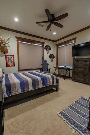 THE EXCEPTION TO THE USUAL! If you want PRIVACY but also the CONVENIENCE of being in a neighborhood, this HOUSE IS FOR YOU!! DRESSED FOR SUCCESS, 1155 Mountain Ridge Rd is BEAUTIFULLY situated down a long private driveway on 20.81 wooded ACRES in the Mountain Ridge sub-division on The Course at Eagle Mountain. Entertaining will part of the REAL JOY in owning this 4-bedroom, 3.50-bathroom home with over 5600 SQUARE FEET! Picturesque entry graciously opens to your centrally located family room and formal dining. The floor to ceiling rock fireplace, custom built-ins, wood vaulted ceiling and wall of glass windows will provide a relaxing environment to go away without getting away. This DECORATER-built kitchen with a pantry offers TOP NOTCH appliances & storage for all of your cooking needs! RELAX in the MORNING ROOM off the kitchen in between preparing meals. PRIMARY BEDROOM with in-suite bath/dressing area is enhanced with heated tile floors, double vanities, a SPACIOUS walk-in shower AND walk-in closet. Main floor also includes 2 additional bedrooms, another full bath, half bath and OFFICE! ENTERTAINING sized RECREATION area in the basement will be the FUN CENTER for you and your g