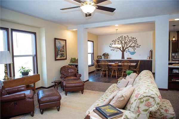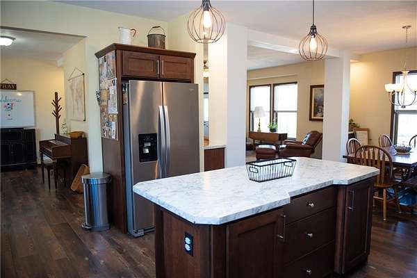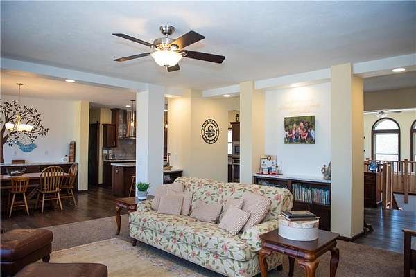 Beautiful Home and acreage, 5 yrs young, 5 bedroom, with 6th non conforming in lower level. Over 4000 sq ft on lovely laid out 2.6 acres. Open floor plan, with extended sunroom. Finished lower level with 2 (3) bedrooms down. 2 with egress windows. Lots of windows in this gorgeous large kitchen with stainless appliances, big kitchen island and pantry. Dining area can suit an expansive farm dining room table, and has built in storage. This home has 3 living spaces that includes the extra add on Sunroom, allowing for many options of usage. Primary Bedroom is on main level with large walk in closet, and spacious en suite bathroom. Lower level boasts amazing space for work/play/and rest. Open concept area with 2 open spaces for pool table, game room and watching your favorite movie. 2 conforming bedrooms and 1 non conforming, great for an office or craft room. 3rd full bath with double vanities and dressing space. Good storage throughout, and big closets as well. Newer fencing being put up around property. Recently surveyed and stakes are apparent. Home is being sold as is. Iron gate in front does not stay. Seller would like at least a 45 day closing window. All sq footage, schools and taxes are approximate, buyer to conduct due diligence. is saying this is in a flood plain, it is not. Please verify with a FEMA map, but seller says it is not.