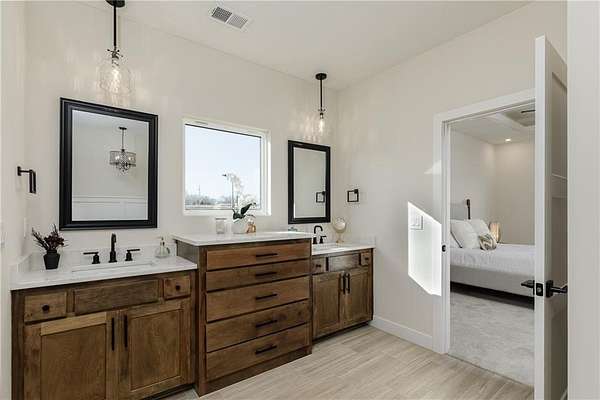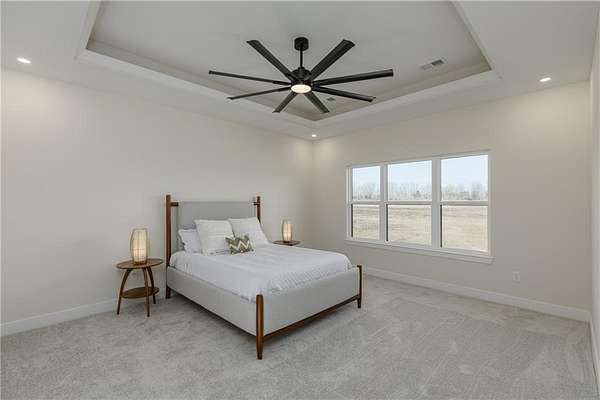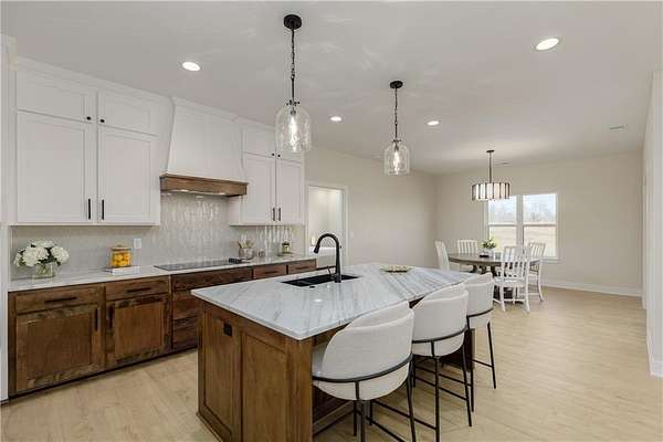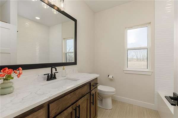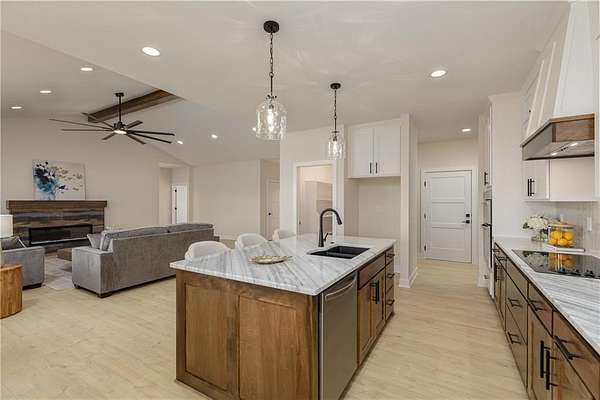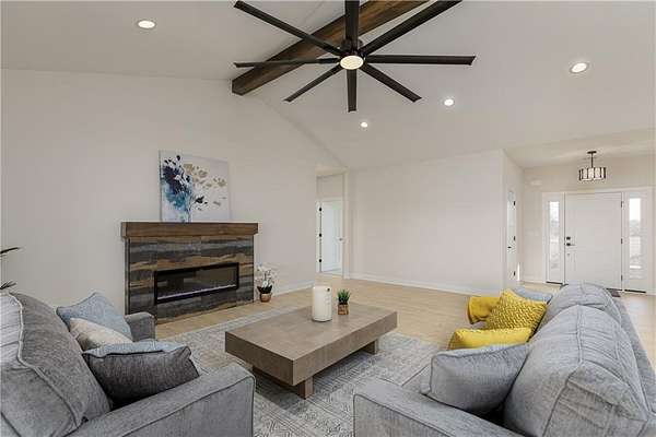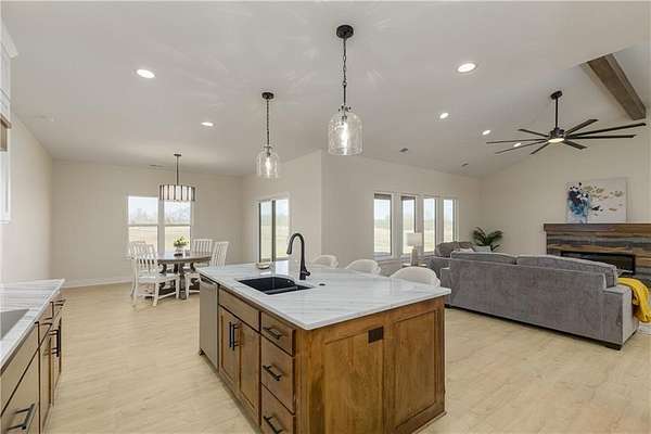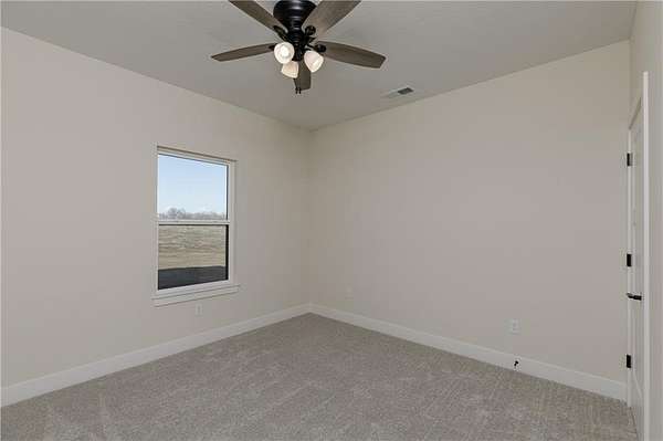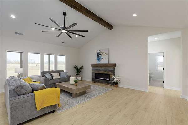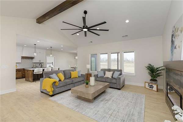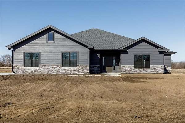 New Price! Come get your piece of country living just outside city limits! Beautiful new construction by Evolution Homes LLC situated on 5.47 scenic acres. This home offers main-level living at its finest with exceptional curb appeal, featuring black windows, attractive stone accents, and a side-entry garage. Step inside to vaulted ceilings with a striking beam and a spacious living room highlighted by a wall of windows and an electric fireplace. The open layout flows into a large dining area, perfect for gatherings. The kitchen is a showstopper with custom cabinetry, marble countertops, stainless steel appliances, a custom hood, and a huge walk-in pantry. The primary suite is generously sized and features a tiled shower with dual shower heads, a relaxing soaker tub, double vanities, and a walk-in closet. Two additional bedrooms and a full bathroom complete the home. Enjoy peaceful country living just outside the city while still being close to everything. Relax on the massive covered back patio-perfect for morning coffee or unwinding after a long day-while taking in the beauty of your 5.47 acres. Owner/Agent.
