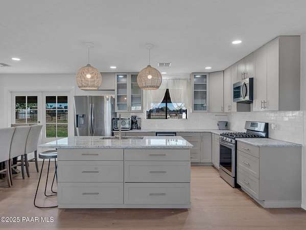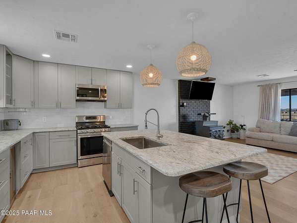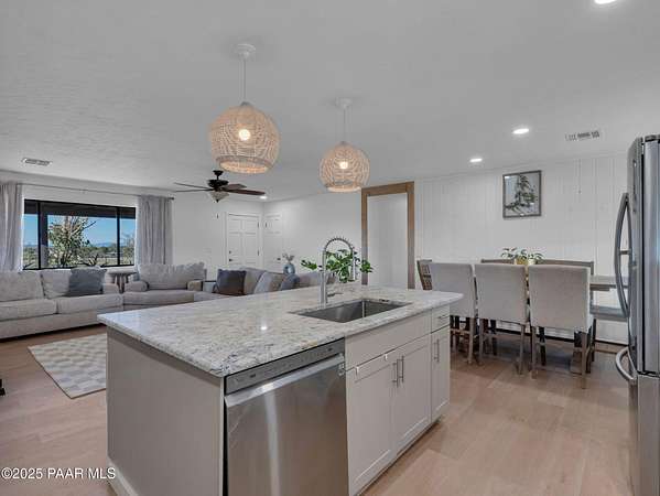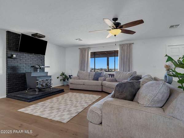 This charming ranch style three-bedroom, two-bathroom single-family home offers the ideal blend of comfort and functionality that horse owners and families will adore.Step inside to a bright, welcoming atmosphere with granite countertops and hardwood floors throughout. This house is equipped with a large wood burning stove as well as a recently installed HVAC system.This property features a fully fenced perimeter, a spacious backyard, a dedicated dog run, and a horse turnout area. The backyard is ideal for outdoor living, complete with grass and a mature shade tree that provides a perfect setting for entertaining or simply relaxing and enjoying Arizona's beautiful weather.Livestock owners will appreciate the property's equestrian-friendly setup, featuring a spacious barn and ample room to expand horse operations or develop additional facilities.This property is conveniently located just 20 minutes from downtown Prescott. Come take advantage of this opportunity to embrace the a rural lifestyle without sacrificing modern conveniences.