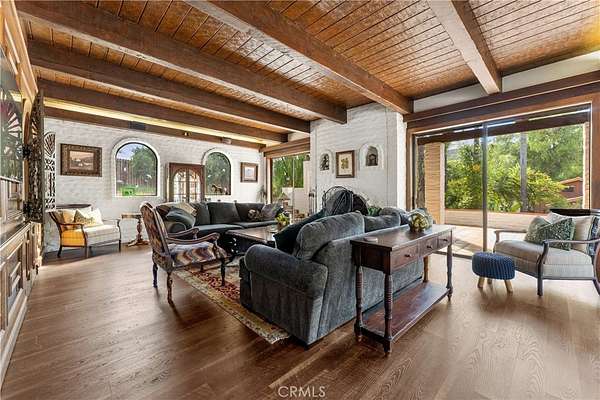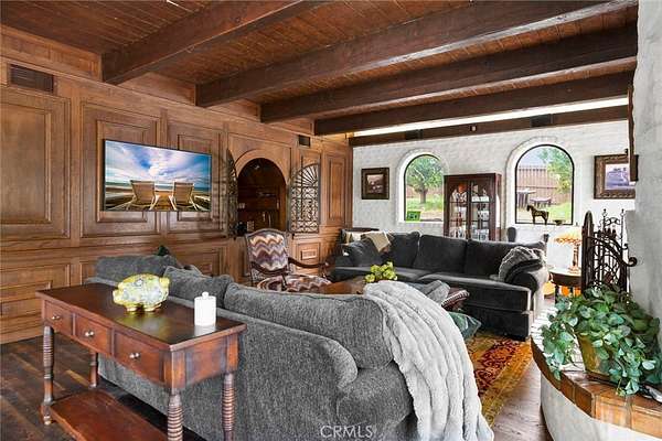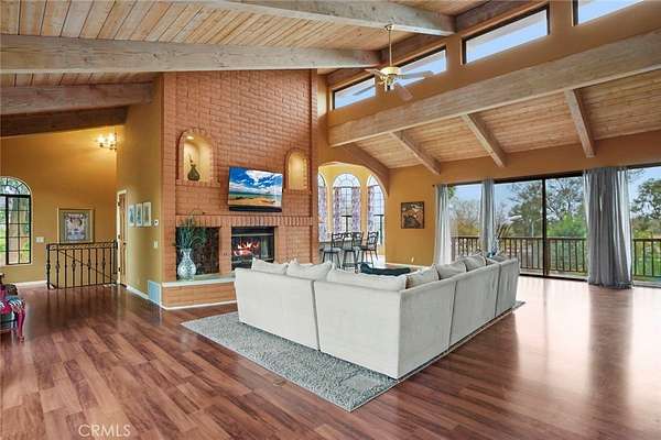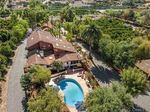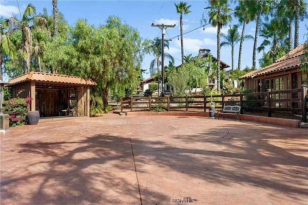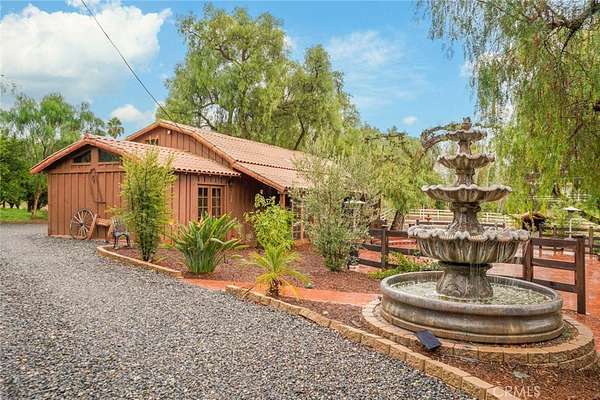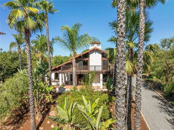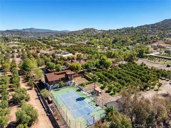 With a rare blend of old-world charm and modern amenities, this hacienda style estate brims with history, grace, attention to the details for fine living, entertainment and enjoyment of the land. The main house has 4 bedrooms/3 baths and showcases classic hacienda design elements. A generous guest house with 2 large bedrooms & 1 bath provides a comfortable stay for visitors. Nestled on over 6 lush acres, everything was designed for unforgettable gatherings. The expansive entertainment pavilion features party rooms, a kitchen, bathroom and bar. Host lively events on the dance floor, dine under ambient lighting, or enjoy live performances on the built-in stage. Stroll through your own flourishing grove of delicious Valencia oranges and passion fruit irrigated by your private well. Tend to your horses or farm animals at the nearby corrals. Grab a game at your private sport court and a swim afterwards in the refreshing sparkling pool. 100 eco-conscious solar panels are owned. Find dedicated parking and hookups for your RV next to a custom deck. The private gated entrance and beautiful tree lined driveway is timeless and impressive. Whether looking for a private oasis or a family compound, hobby farm or expand your crop, tend to a horse or buy another, this stunning property has it all. Contact me for your private tour today. Kris Gelbart. 858-395-0761. GelbartRealtyGroup.com.