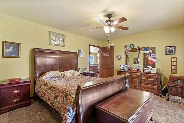 Welcome to this inviting and peaceful property! This 10 acres (m/l) has well maintained custom home that is full brick, 3 bedroom, 2 bath, 3-car garage. Good size kitchen w/ granite counters and tile floor has eat-in bar, island and tons of soft-close cabinets and is open to good-sized nook and large living both with rich wood laminate floors. Living room has fireplace and doors that open to garden oasis and covered patio. Large primary suite has plenty of room for furnishings, walk-in closet and bath with tile floors, granite countertop single sink and whirlpool tub. Secondary bedrooms are good sized and have large closets. New Class 3 Impact Resistant roof & exterior paint 2024, termite inspection and bait system installed for prevention in 2025, newer A-coil and hot water tank - 2019. Approximately 8 of the 10 acres is heavily wooded and has a wet weather creek. Treed portion of the property has partial barbed wire fencing.