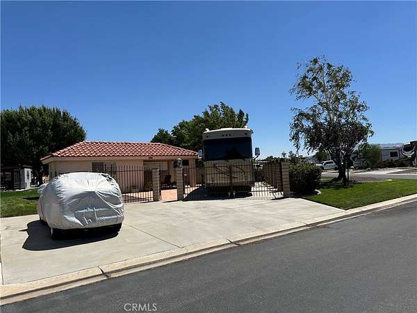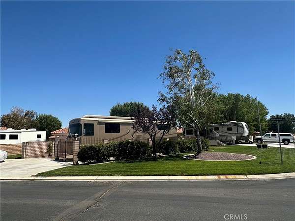 Discover the perfect outdoor living experience with this exceptional corner lot in the vibrant Jess Ranch RV Lot community! This beautifully landscaped parcel spans an impressive 4,500 sq. ft. and features lots of concrete, ample parking space, lush grass, elegant block walls, and secure wrought iron gates, offering both privacy and charm.