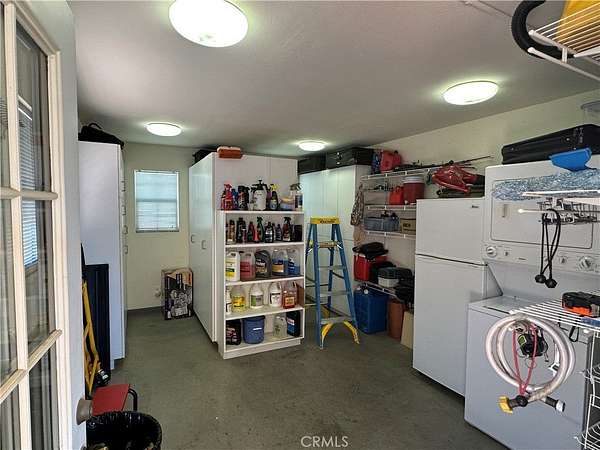 At the heart of the lot is a well-appointed 200 sq. ft. storage unit, equipped with a stackable washer and dryer, a refrigerator, and ample storage cabinets. A convenient water softener system and automatic sprinklers further enhance this versatile property.