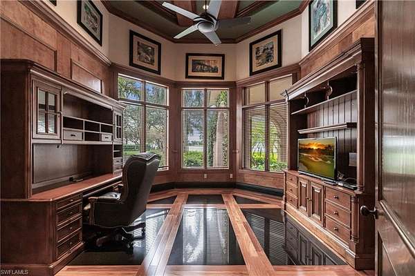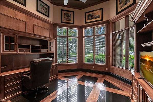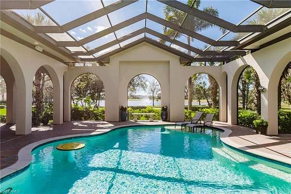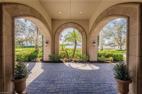 INCLUDES FULL GOLF MEMBERSHIP! This residence is absolutely stunning! With its expansive lot, picturesque lake and golf course views, and meticulous landscaping, it's a true oasis. The attention to detail in its architectural design and craftsmanship is evident throughout its 5,071 sq ft of living space. The inclusion of 4 bedrooms, 2 offices, 5 baths, and a spacious 4-car garage ensures both luxury and practicality. The rotunda entryway sets a grand tone, leading seamlessly to an outdoor courtyard and connecting to the open great room, kitchen, and dining area, perfect for both everyday living and special occasions. And with a total of 8,532 sq ft that includes an impressive colonnade structure, oversized pool and spa, fireplace, full outdoor kitchen, and multiple seating areas, it's designed for ultimate relaxation and entertaining. The addition of a private guest bedroom suite with a wet bar, bath, and sitting area adds an extra layer of luxury and convenience for guests. And with features like stone flooring, custom woodwork, tray ceilings, a lighting system, and security cameras, every detail has been carefully considered to create a truly exceptional living experience. Located in the TwinEagles private golf community, which has recently undergone a significant $30,000,000 renovation, including a new clubhouse, bocce facilities, and upgrades to the golf course, this residence offers not just a beautiful home but also access to a vibrant and upscale community lifestyle in Southwest Florida.