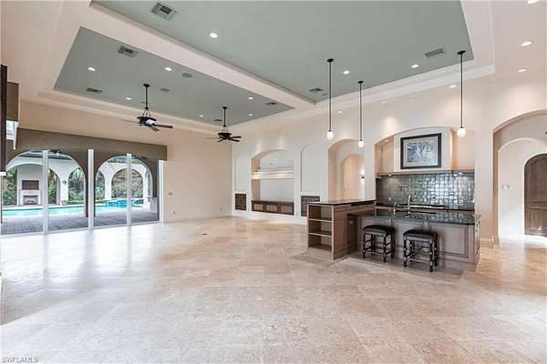 INCLUDES FULL GOLF MEMBERSHIP! This residence is absolutely stunning! With its expansive lot, picturesque lake and golf course views, and meticulous landscaping, it's a true oasis. The attention to detail in its architectural design and craftsmanship is evident throughout its 5,071 sq ft of living space. The inclusion of 4 bedrooms, 2 offices, 5 baths, and a spacious 4-car garage ensures both luxury and practicality. The rotunda entryway sets a grand tone, leading seamlessly to an outdoor courtyard and connecting to the open great room, kitchen, and dining area, perfect for both everyday living and special occasions. And with a total of 8,532 sq ft that includes an impressive colonnade structure, oversized pool and spa, fireplace, full outdoor kitchen, and multiple seating areas, it's designed for ultimate relaxation and entertaining. The addition of a private guest bedroom suite with a wet bar, bath, and sitting area adds an extra layer of luxury and convenience for guests. And with features like stone flooring, custom woodwork, tray ceilings, a lighting system, and security cameras, every detail has been carefully considered to create a truly exceptional living experience. Located in the TwinEagles private golf community, which has recently undergone a significant $30,000,000 renovation, including a new clubhouse, bocce facilities, and upgrades to the golf course, this residence offers not just a beautiful home but also access to a vibrant and upscale community lifestyle in Southwest Florida.