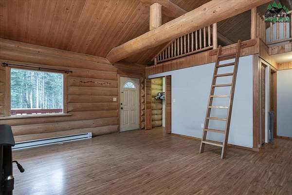 Beautiful and private log home built by Log Weavers on 3.78 acres. Two-bedroom, one-bathroom, plus a loft bonus room. Open and bright floor plan with a vaulted ceiling and south facing windows. Wood stove, stackable washer and dryer, and south facing deck. Foundation of steel I-beams and large concrete pads releveled in September of 2025 by Thompson Leveling. 8'x12' shed, wonderful chicken coop with chicken run, and a woodshed.