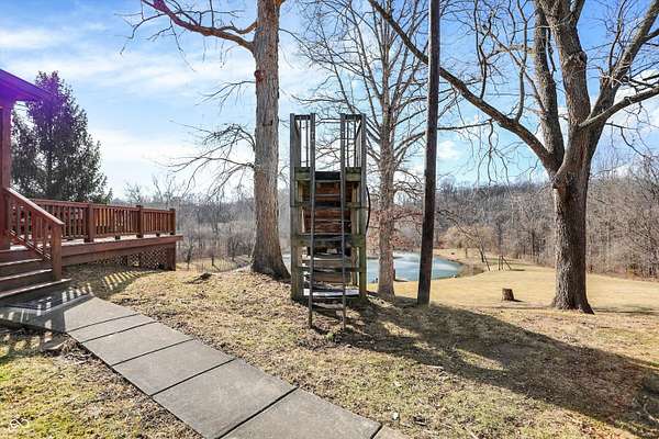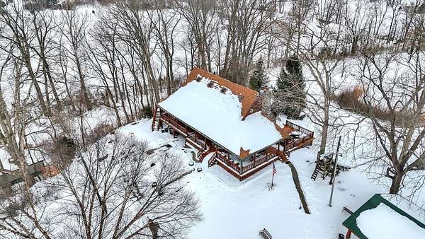 Rare opportunity to own 12.63 acres featuring a 2.5-acre stocked pond that reaches approximately 22 feet deep, complete with a water slide, offering both recreation and excellent fishing. The property is improved with a 4-bedroom, 2-bath cedar cabin-style home offering over 3,100 square feet of living space, blending rustic charm with generous room for everyday living and entertaining. Outdoor amenities are truly unmatched and include an outdoor shelter with a built-in bar, a basketball court, three outbuildings (43 x 24) (56 x 24) (60 x 55), and stadium lighting that illuminates a custom dirt go-kart track. With a unique combination of residential comfort, recreational features, and expansive acreage, this property offers endless possibilities for private enjoyment, entertaining, or future use. A one-of-a-kind offering rarely found on the market.