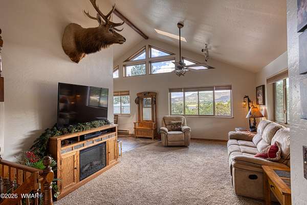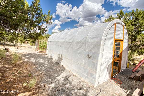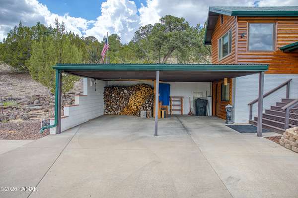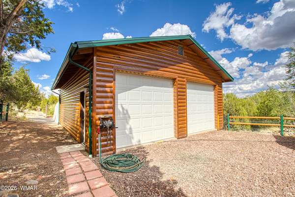 Nestled on a hillside at the end of a private paved driveway, this exceptionally clean and well-kept 3-bedroom, 2.5-bath log-sided cabin style home offers the perfect blend of privacy and functionality on 4.28 acres. Completely move-in ready, the home ensures year-round comfort with a forced-air heating and air conditioning system, complemented by a cozy wood stove that adds that classic cabin warmth. The pride of ownership is evident before you even step inside, featuring freshly stained exterior logs on the home and the oversized garage, plus landscaping with a timed watering system. The split-level floor plan is designed for modern living, an updated upstairs bathroom and brand-new flooring throughout the lower level. For those needing extra space, there is a large laundry room and separate craft room/home office. Additionally, the home features a generous storage crawl space underneath, perfect for keeping seasonal gear and extras tucked away but accessible. The property is a true haven for hobbyists and those seeking a self-sustaining lifestyle. A standout feature is the 26'x35' oversized two-car garage, which includes a built in workshop and a convenient half bathroom. Outside the property is equipped for gardening and animals, featuring a large 12w x 30L greenhouse, a large fenced-in dog run, a chicken coop, and raised, fenced garden beds. You can enjoy your own harvest from the apple and peach trees along with grape vines. Enhancing the outdoor living experience is a beautiful partial wrap-around deck made of durable, low-maintenance Trex decking, providing the perfect platform to overlook the grounds. The property's elevated position serves as a constant reminder of its incredible location, offering a privacy where you can soak in the panoramic views from the hot tub area, (hot tub not included, but possibly negotiated) or simply enjoy the quiet stillness of your own acreage. Altogether, this impeccably maintained property offers a rare combination of privacy, functional homestead features, and unmatched beauty, making it a truly remarkable place to call home.