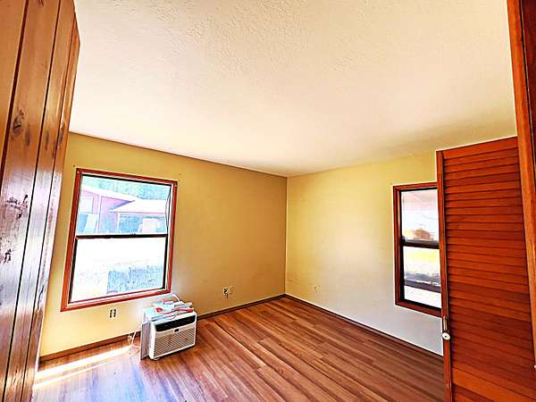 Welcome through the wrought iron gate to a unique development opportunity on a level, fenced 5-acre parcel. Parcel features TWO rustic homes with knotty pine accents and exceptional potential. The ADU-type 1986 1bd/1ba home of appx 980sf has been recently remodeled. The primary 2bd/2ba home built in 1981 home is appx 1190sf. This home has also been remodeled - check out the new bathroom when you tour! Each home is equipped with a separate septic system and electric meter. Records indicate that the roof on each home was replaced in 2009. Property includes several outbuildings: centrally located laundry building w/storage, oversized detached two-bay garage with workshop areas, sheds, and attached carport with BIG space for multiple RVs. The reliable well provides water to both homes; prior records show 27GPM! Currently undergoing cleanup, this property offers significant development potential with multiple clearings, beautiful meadows, water & a forested perimeter! Check out 3D tour!