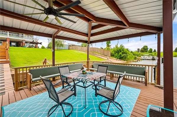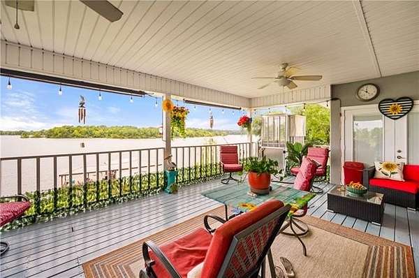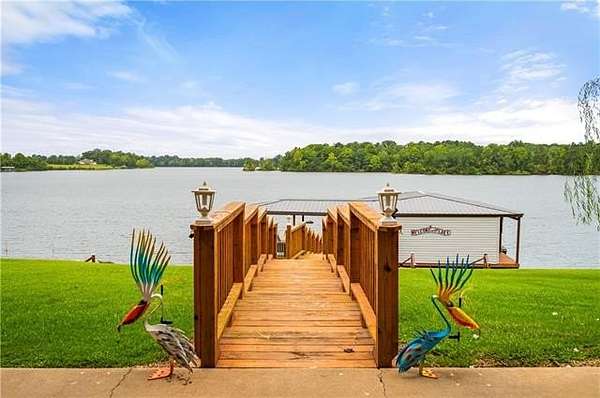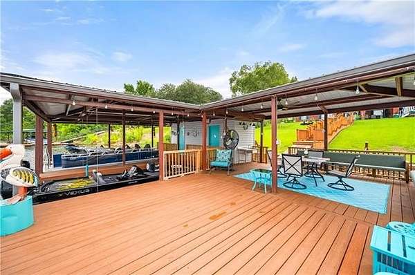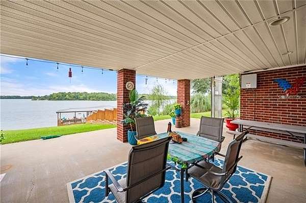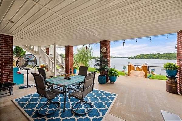 Luxury meets Oxbow with this elegant lakefront home, where refined interior touches meet exceptional outdoor living. On the water, you'll find a private boat ramp and an expansive floating dock that's sure to impress with a covered entertaining area and a sun deck. The boathouse features two motorized boat lifts, a large storage room, and a fish cleaning station. The two large back porches overlook the water and have a unique elevator for added convenience. Step into the immaculate, open living area full of natural light and beautiful French doors leading to the upstairs patio. The luxurious master suite offers a spacious bedroom, a massive walk-in closet, and a spa like bathroom with soaring ceilings, walk in shower, Jacuzzi tub, and double sinks. The kitchen features cathedral ceilings, a gas range/oven with an additional electric oven, and a breakfast nook apart from the formal dining area. The two additional bedrooms include double closets, and a newly updated second bath adds comfort and convenience. The private downstairs apartment with its own entrance, full bath, service sink, walk in closet with shelving, and separate AC, making it ideal for guests or extended stays. The home has an oversized 2 car garage, a detached covered workshop, and a separate storage shed. This rare waterfront property doesn't come along often and checks all of the boxes.