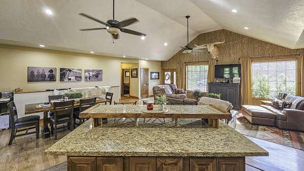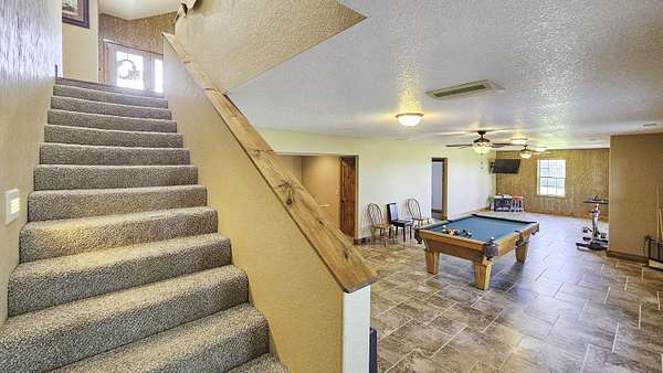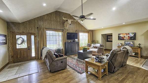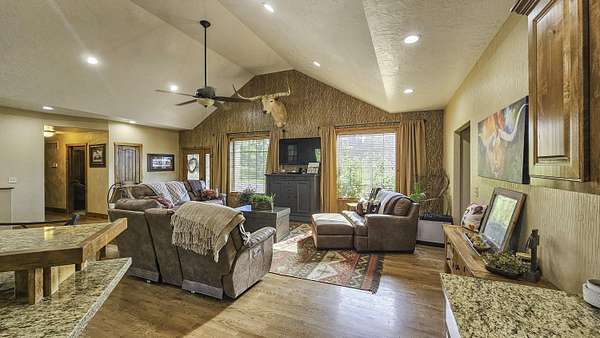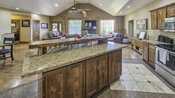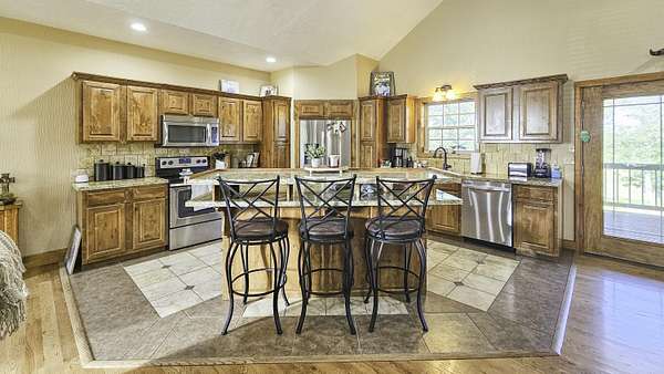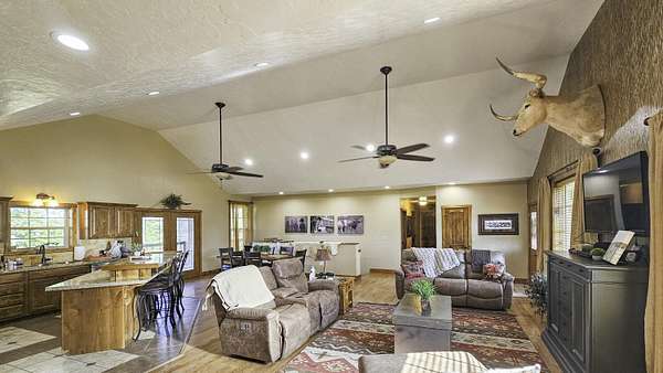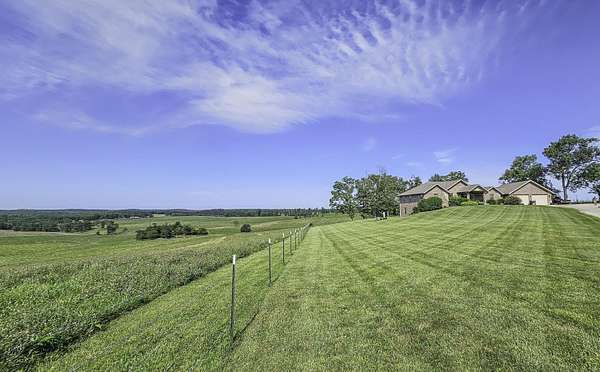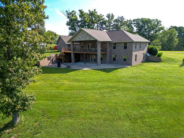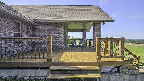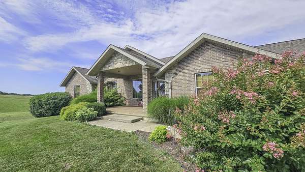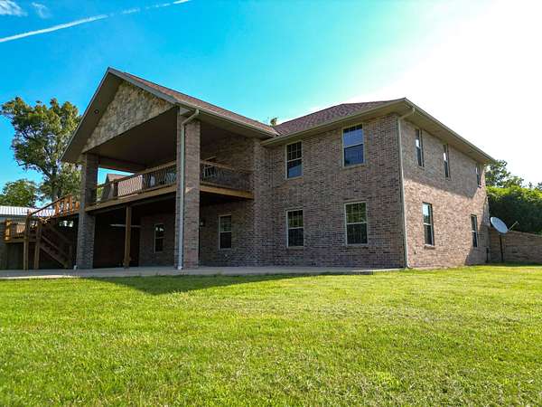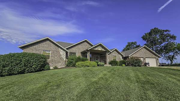 Custom Home For Sale in Douglas County! Located south of Mountain Grove sits a beautiful all brick and stone home on 14.25+/- acres. Built in 2014, and with over 4,000 square feet, this spacious home has 4 bedrooms, 3 full bathrooms, vaulted ceilings, and a walk-out basement. The kitchen has custom alder cabinets, a large island, and granite countertops. Off of the kitchen is the covered deck where you can look out over your pasture, and has incredible long-range views. The large primary suite has tray ceilings, a walk-in closet, walk-in shower and double sinks. There is another bedroom and bathroom on the opposite side of the great room, and a laundry/mudroom off of the 2-car garage. Downstairs has two more bedrooms (one non-conforming), a bathroom, the kitchenette and bar top, and a large family/game room, and a large partially covered patio. There is a 24x22' detached garage with a wood furnace. The fenced pasture is approximately 12 acres, perfect for a hobby farm and homestead! Close to Mark Twain National Forest and the historic Topaz Mill. 20+/- minutes to Mountain Grove and Cabool, 40+/- to Houston, 1 hour 15 minutes+/- to Springfield, and close to the many rivers, lakes and sights that the Missouri Ozarks has to offer!**can be purchased as home with 2 Acres +/- for $495000