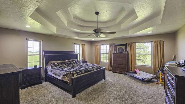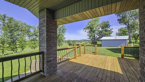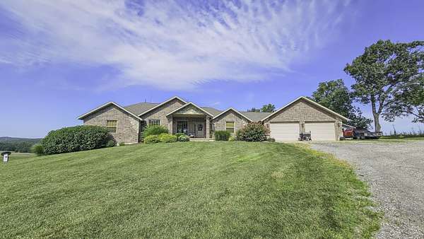 Custom Home For Sale in Douglas County! Located south of Mountain Grove sits a beautiful all brick and stone home on 2+/- acres. Built in 2014, and with over 4,000 square feet, this spacious home has 4 bedrooms, 3 full bathrooms, vaulted ceilings, and a walk-out basement. The kitchen has custom alder cabinets, a large island, and granite countertops. Off of the kitchen is the covered deck where you can look out over the incredible long-range views to the west. The large primary suite has tray ceilings, a walk-in closet, walk-in shower and double sinks. There is another bedroom and bathroom on the opposite side of the great room, and a laundry/mudroom off of the 2-car garage. Downstairs has two more bedrooms (one non-conforming), a bathroom, the kitchenette and bar top, and a large family/game room, and a large partially covered patio. There is a 24x22' detached garage with a wood furnace. Close to Mark Twain National Forest and the historic Topaz Mill. 20+/- minutes to Mountain Grove and Cabool, 40+/- to Houston, 1 hour 15 minutes+/- to Springfield, and close to the many rivers, lakes and sights that the Missouri Ozarks has to offer!