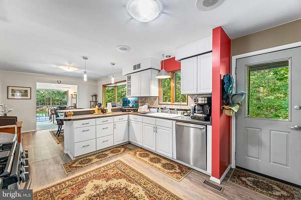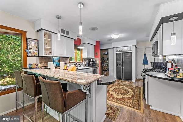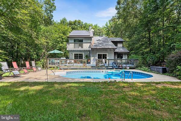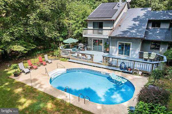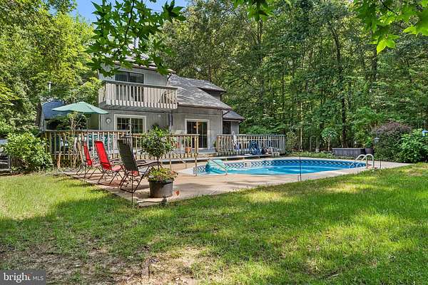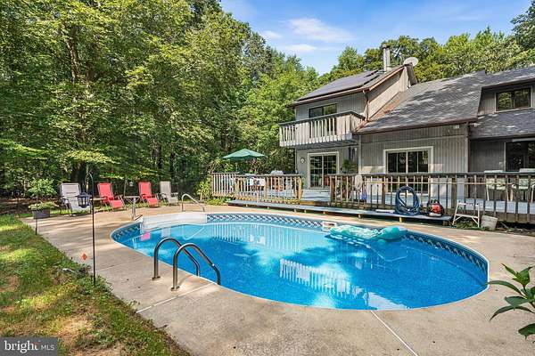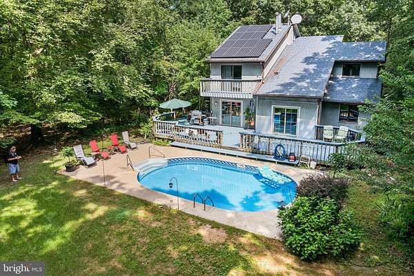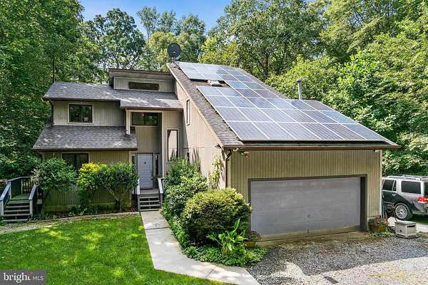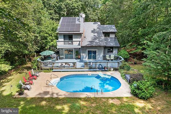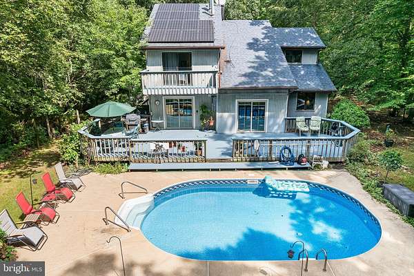 Mortgage savings may be available for buyers of this listing Tucked away at the end of a long private driveway, this beautifully maintained 4-bedroom, 3.5-bath contemporary-style home offers rare privacy on over two acres in the sought-after Chapel District of Talbot County, just minutes from Easton and Route 50 for easy commuting. Surrounded by mature trees and landscaped grounds, this custom-built residence blends natural beauty, comfort, and thoughtful design in a truly tranquil setting. Inside, vaulted ceilings and an abundance of windows create a bright and airy atmosphere throughout the home. The spacious eat-in kitchen offers generous counter space, ample cabinetry, and a pantry, and opens to a dining area with direct access to a full-length deck-perfect for everyday living and entertaining. The deck runs the length of the backyard and overlooks a large in-ground pool surrounded by attractive hardscaping, offering a seamless indoor-outdoor lifestyle. There is also 1/2 bath just off of the kitchen area for convenience. The great room features soaring cathedral ceilings, a sunken floor, and a cozy fireplace, along with sliding glass doors that bring in natural light and connect the interior to the outdoor living spaces. The main level includes to additional bedrooms offering flexible options for guests, family, or as a private au pair or in-law suite with its own separate entrance, full bath, and kitchenette-ideal for multi-generational living or extended stays. Seller is willing to remove the kitchenette in the in-law suite at the buyer's request. Upstairs, the expansive primary suite serves as a peaceful retreat, complete with vaulted ceilings, a private balcony with views of the secluded backyard, and a beautifully updated en suite bath featuring a large jetted tub, custom tiled shower, and a deep walk-in closet with a conveniently located laundry area. The upper level secondary bedrooms also has a private full bath.The backyard is designed for both entertaining and relaxation, featuring a 16x40 deck, a spacious paver patio, and a sparkling in-ground pool, all bordered by mature trees that ensure privacy and serenity. Recent updates include a newer roof, updated HVAC system, and newer pool liner. Ample parking options include a spacious two-car garage, an expansive parking pad that accommodates 6+ vehicles, dedicated side parking for an RV, and a separate area ideal for boat storage. This home also features privately owned solar panels, maximizing energy efficiency and offering long-term savings. Combining peaceful wooded surroundings with close proximity to Easton, Route 50, and the amenities of Talbot County, this exceptional property is a rare opportunity for private living in a prime location.