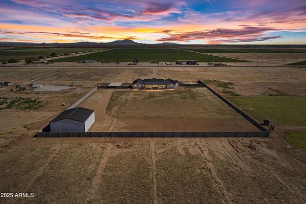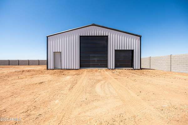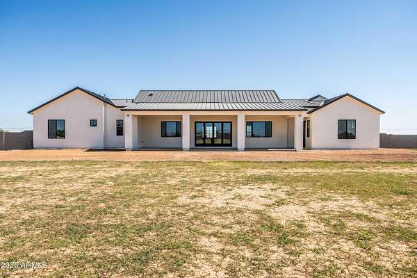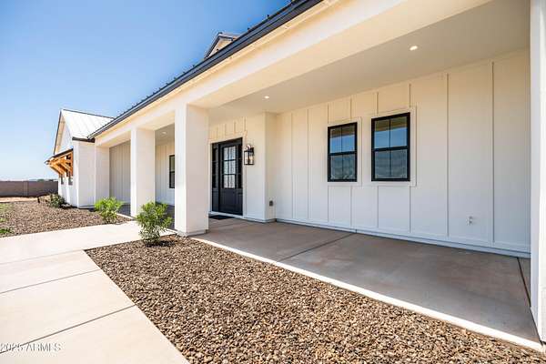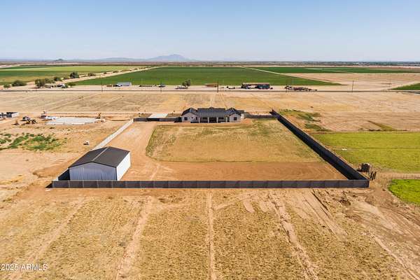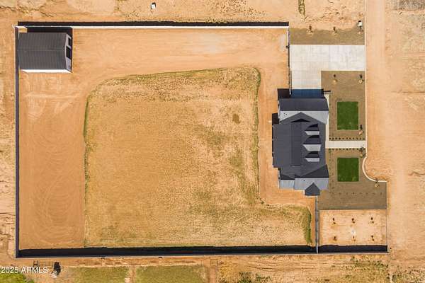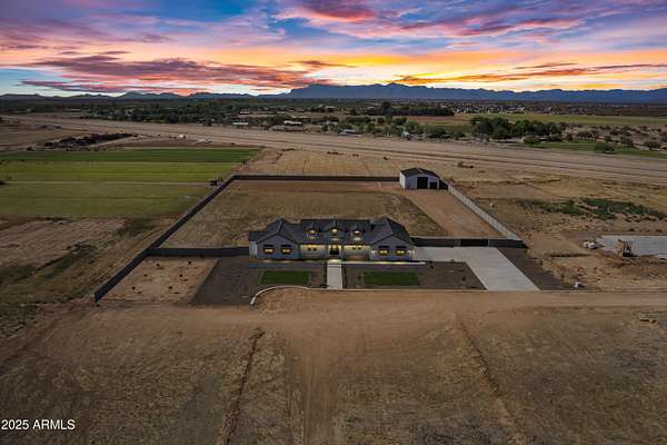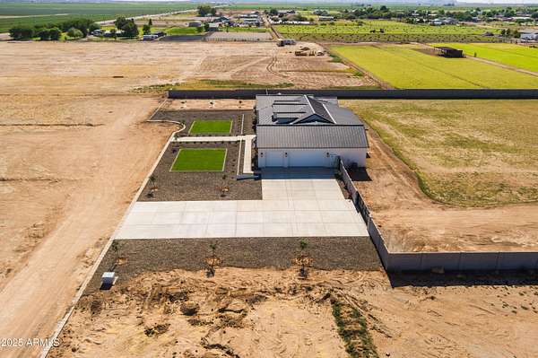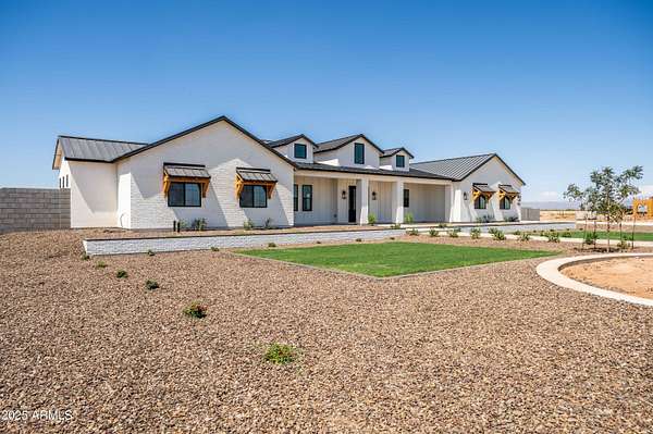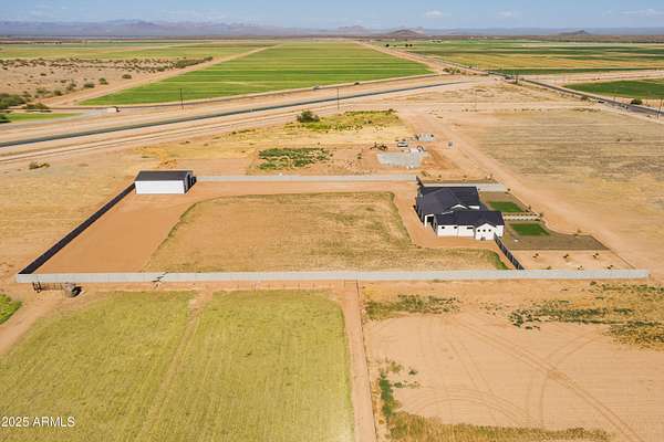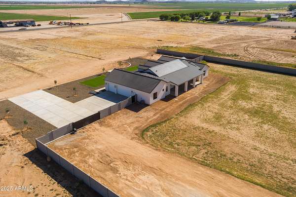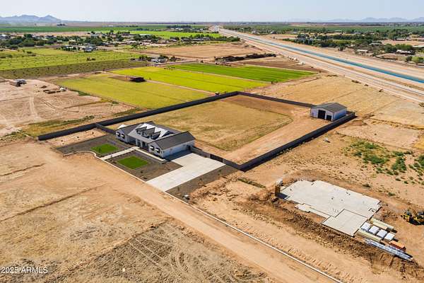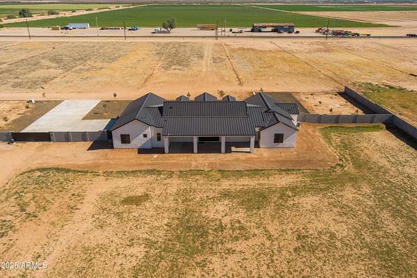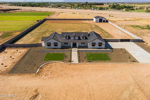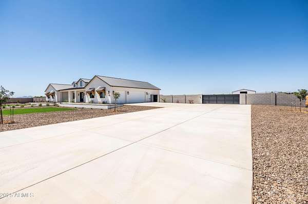 This is the one you've been waiting for - custom new construction on 2.5 acres with space, style, and substance. This 3,315 sf single-story home blends thoughtful craftsmanship with modern design, featuring 4 spacious bedrooms, 3 bathrooms, and an open-concept layout built for comfort and connection. Step inside and you'll immediately feel the difference-1' x 5' wood-look plank tile throughout, custom crown molding and upgraded trim at every turn, and an accordion-style patio door that opens wide to a scenic desert backdrop. The living room is anchored by a sleek fireplace and custom bookshelf, while the chef-inspired kitchen is the heart of the home with 42'' cabinetry with soft-close and dovetail drawers, stainless steel appliances, electric cooktop farmhouse apron sink, a large waterfall edge island, crisp quartz countertops and R/O system. Built with longevity and efficiency in mind, the home features spray foam insulation, 2"x6" framing (interior and exterior), 16" on-center construction, synthetic stucco, a durable metal roof system, and is electric car ready. The oversized 3-car garage includes extended depth and epoxy floors, perfect for storage or hobbies. Step outside and you'll appreciate the fully enclosed property, surrounded by a block wall with a 20' rolling automatic gate. The 2,000 square foot detached shop with a 14' door is a dream setup for a car enthusiast, horse owners, small business or anyone needing serious space. Front landscaping is already complete, and the entire property is on irrigation. And SAVE money with low well water bills! Location matters and this one is ideally situated just one mile from the planned Hwy 24 expansion, offering convenience without sacrificing the peaceful, open feel this property provides. The ideal buyer will love the space, freedom and flexibility this home offers whether you're looking to spread out, store your toys, or simply enjoy room to breathe.