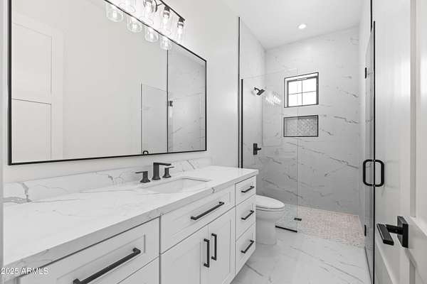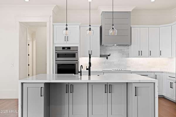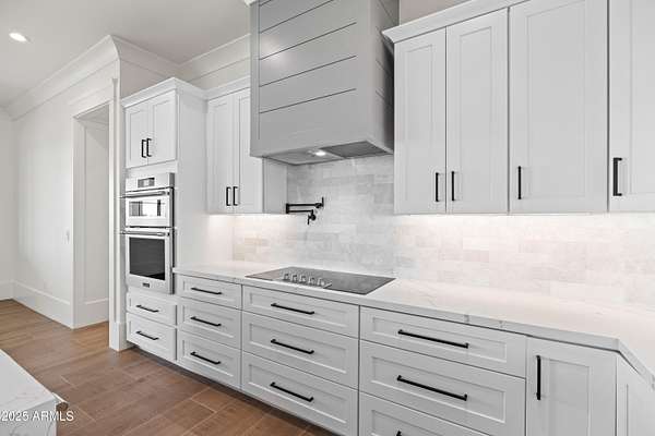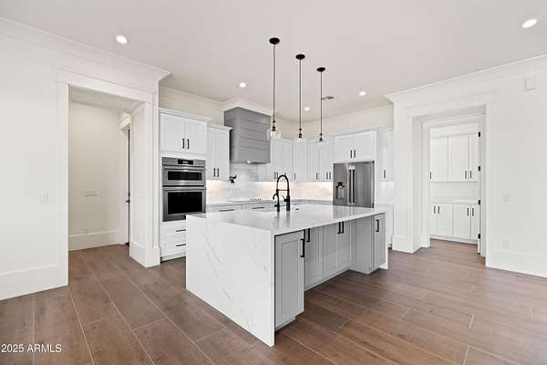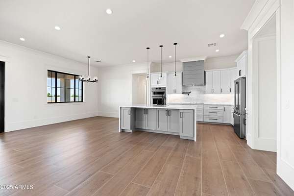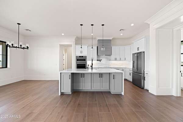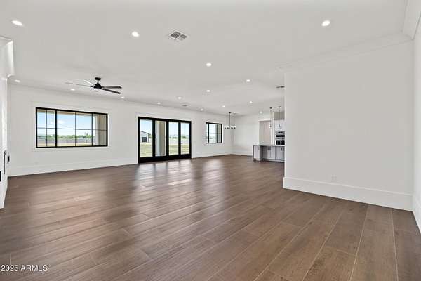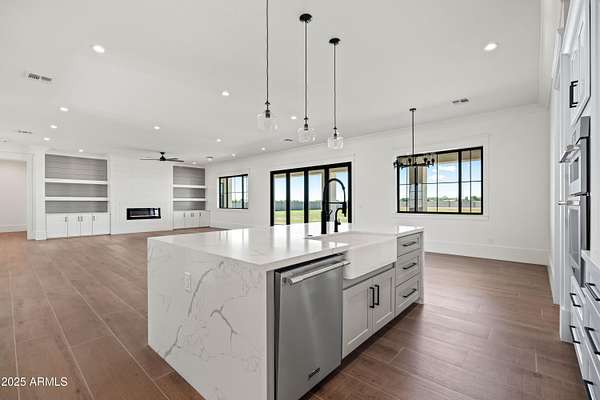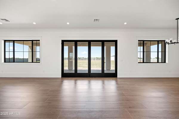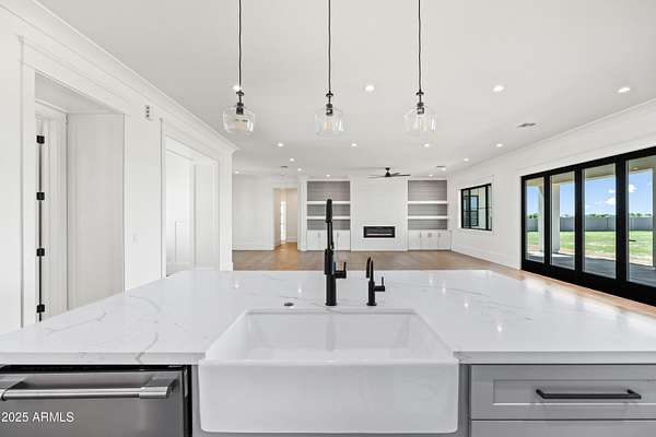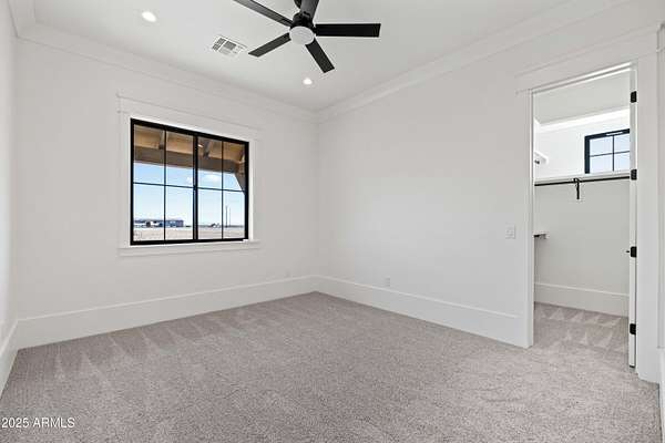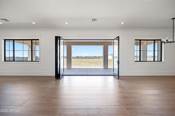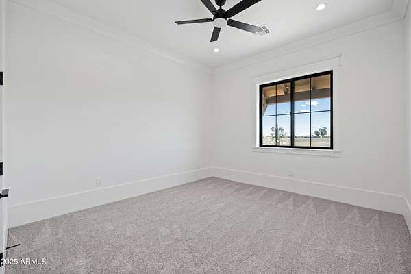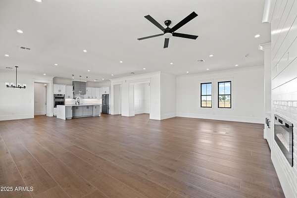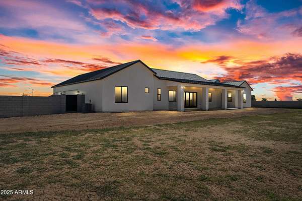 This is the one you've been waiting for - custom new construction on 2.5 acres with space, style, and substance. This 3,315 sf single-story home blends thoughtful craftsmanship with modern design, featuring 4 spacious bedrooms, 3 bathrooms, and an open-concept layout built for comfort and connection. Step inside and you'll immediately feel the difference-1' x 5' wood-look plank tile throughout, custom crown molding and upgraded trim at every turn, and an accordion-style patio door that opens wide to a scenic desert backdrop. The living room is anchored by a sleek fireplace and custom bookshelf, while the chef-inspired kitchen is the heart of the home with 42'' cabinetry with soft-close and dovetail drawers, stainless steel appliances, electric cooktop farmhouse apron sink, a large waterfall edge island, crisp quartz countertops and R/O system. Built with longevity and efficiency in mind, the home features spray foam insulation, 2"x6" framing (interior and exterior), 16" on-center construction, synthetic stucco, a durable metal roof system, and is electric car ready. The oversized 3-car garage includes extended depth and epoxy floors, perfect for storage or hobbies. Step outside and you'll appreciate the fully enclosed property, surrounded by a block wall with a 20' rolling automatic gate. The 2,000 square foot detached shop with a 14' door is a dream setup for a car enthusiast, horse owners, small business or anyone needing serious space. Front landscaping is already complete, and the entire property is on irrigation. And SAVE money with low well water bills! Location matters and this one is ideally situated just one mile from the planned Hwy 24 expansion, offering convenience without sacrificing the peaceful, open feel this property provides. The ideal buyer will love the space, freedom and flexibility this home offers whether you're looking to spread out, store your toys, or simply enjoy room to breathe.
