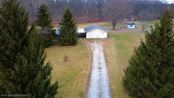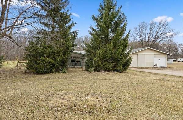 Est $1,013/moCharming 3 BR, 2 full bath home situated on 1.65 flat acres with mature trees and a long private driveway. Inside you'll find a kitchen with stainless appliances, dining room with built in shelves, comfortable living room, and a spacious great room featuring a custom stone gas fireplace and expansive windows that bring in natural light. The property offers excellent privacy and includes a covered breezeway leading to the large 2 1/2-car detached pole barn with electric, concrete floor and work station. Seller is providing new bathtub inserts for both baths that will need to be installed by the buyer. Dual furnace, central air, newer roof, paint and carpet throughout. New stainless dishwasher needs connected. Appliances stay with the home.
