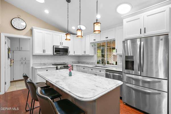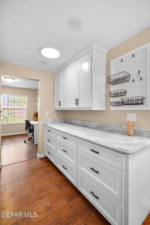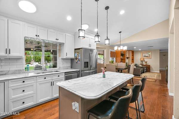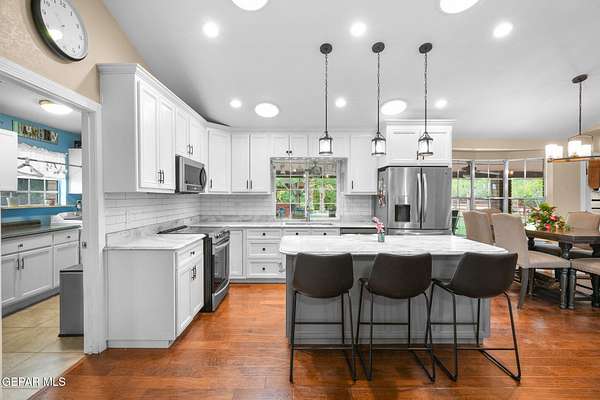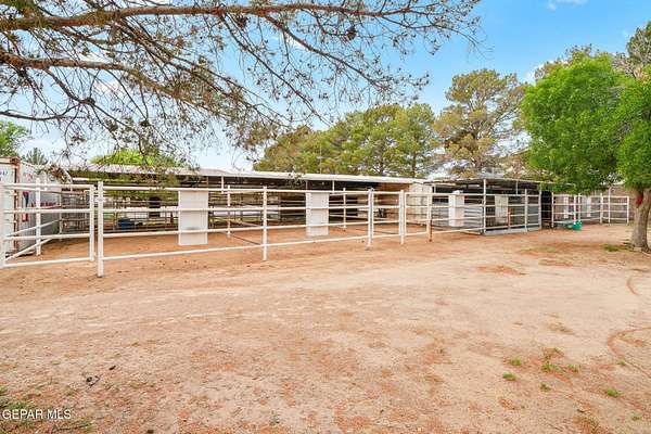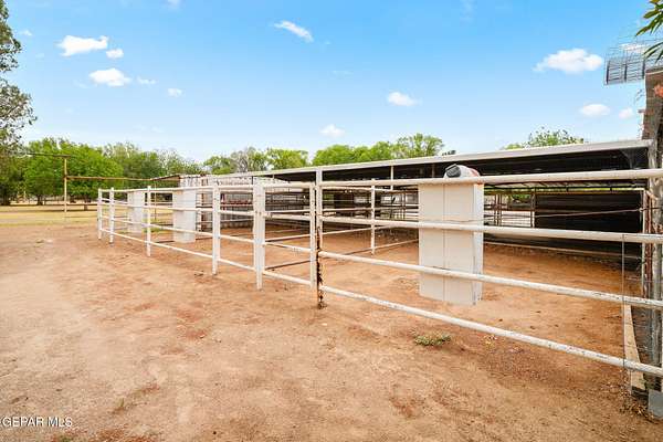 Welcome to this beautifully updated country home located at 11566 North Loop in Socorro, Texas. This versatile horse property offers the perfect blend of rural charm and modern convenience. The home features an open floor plan with abundant natural light, creating a warm and inviting living space. The remodeled kitchen includes updated finishes and flows seamlessly into the living and dining areas. A butler's pantry includes the laundry room providing added storage and functionality. Both bathrooms have been tastefully updated. Outside enjoy a large backyard with a pond and BBQ area providing plenty of room for entertaining. Designed with equestrian use in mind, the property includes multiple horse stalls and space for riding or training as well as a 600 sqft studio apartment. The 60x30 shop has 3 built in tack rooms. This property offers comfort, functionality, and country living at its best!