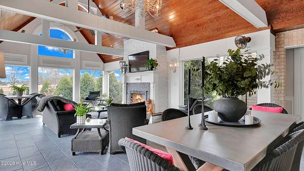 This exceptional 7,500-sq. ft Autumn Lakes estate defines elevated living, where timeless elegance meets modern luxury. Fully renovated, this home offers 4 bedrooms, 5.5 baths, a home theater, expansive recreation spaces, and a seamless blend of formal and casual living. A grand arrival leads into a dramatic foyer with soaring 20-foot ceilings, flanked by a private study and formal dining room. The main living room commands attention with a striking floor-to-ceiling fireplace, creating a warm yet sophisticated gathering space. The executive kitchen blends function and style, opening to a spacious breakfast area and a tucked-away secondary living room ideal for hanging out.The private rear staircase enhances flow and privacy. The main-level owner's retreat is a true sanctuary, featuring a fireplace, roomy sitting area a beautifully updated bathroom and a custom-designed walk-in closet with exceptional storage. The main level also includes an additional bedroom with a full bath, along with a well-appointed laundry room offering cabinetry, granite and a deep sink just off the garage entry. Upstairs, dual staircases lead to a home theater, loft space overlooking the backyard, and multiple flexible rooms for work, fitness, or guests. A bedroom currently used as a home gym includes a full bath, while two additional bedrooms share a full bath. A convenient kitchenette sits just outside the oversized recreation room with half bath and sitting area, The alternate hall /catwalk leads to an additional sitting area- loft and a well proportioned private ensuite bedroom. Outdoor living is resort-inspired, featuring a year-round screened porch with fireplace and TV-surely bound to be a favorite room. The saltwater pool is surrounded by travertine, has a grilling station, covered cabana, and gas fire pit-designed for entertaining or a private time to unwind and relax. 3 car garage. Extensive seller notes in document