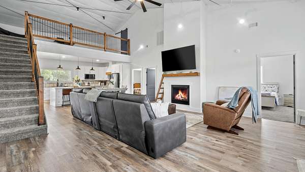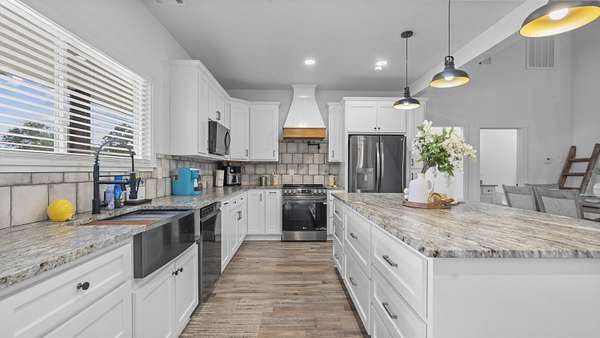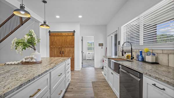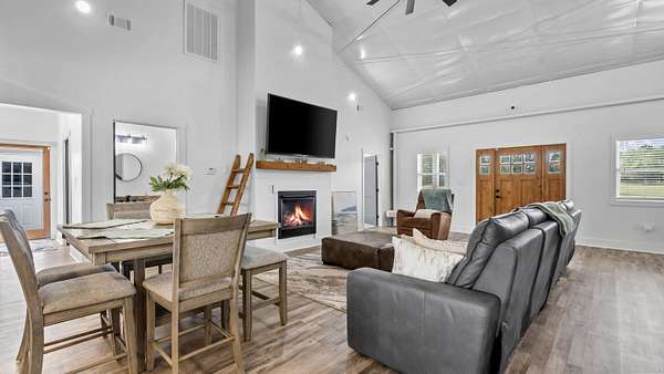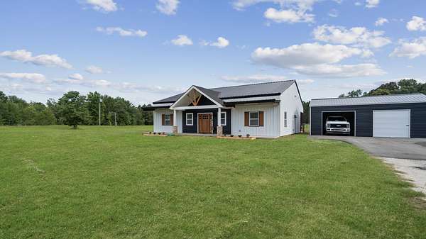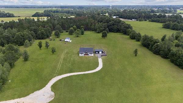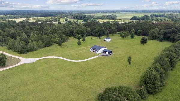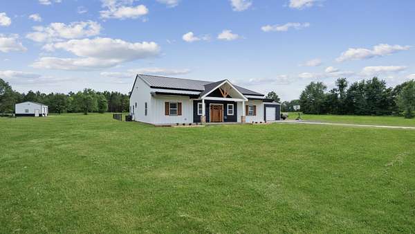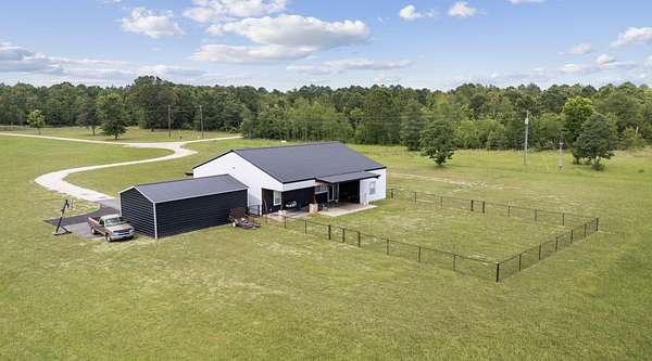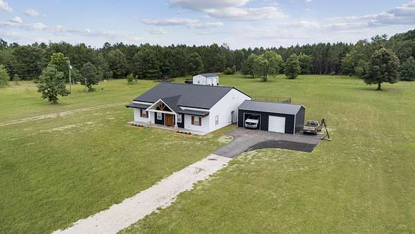 Brand New Barndominium Beauty and 10 acres!! This charming, energy efficient constructed 4 bedroom 2 bath home is serenely located close to amenities. The home features an open concept with 12 to 20 ' ceilings showings the structural steel beams. The huge gourmet kitchen features custom cabinetry, beautiful granite countertops , and plenty of cabinet space. It is so energy efficient that the electric bill is only around 100 bucks! There are 2 unfinished rooms upstairs that can easily create additional bedrooms, if desired. The 20 x 30 ft shop is fully electrically wired and perfect to storing equipment or an work area. The 10.97 acres is simply breathtaking! The best part is that the home is located just minutes from the town amenities but privately away from the traffic. Come look and fall in love with this gorgeous home!