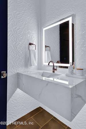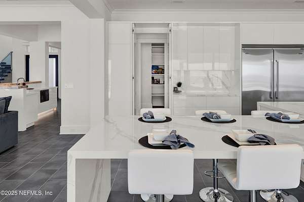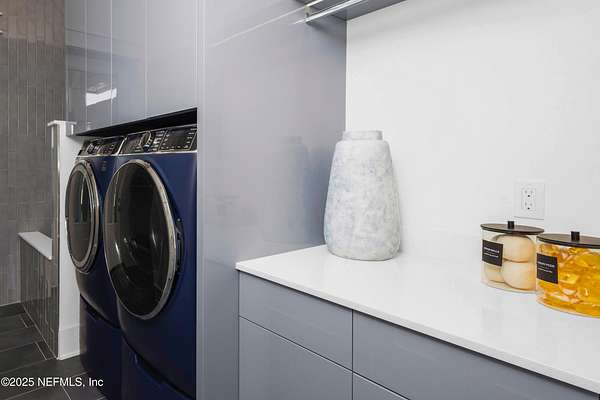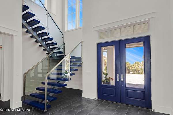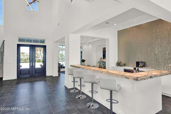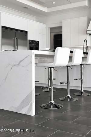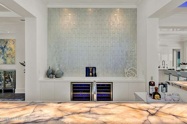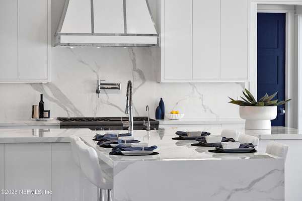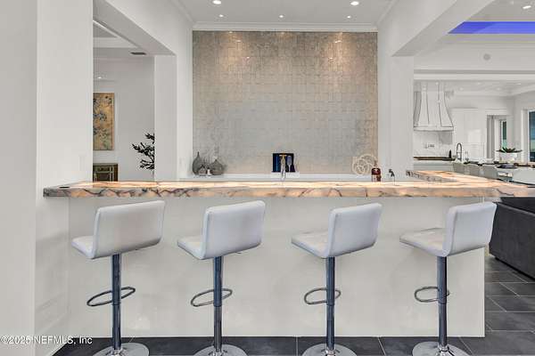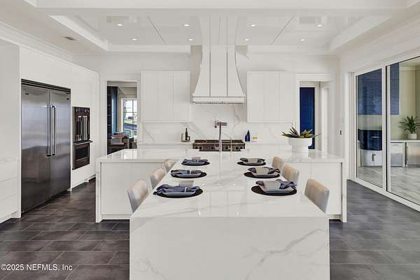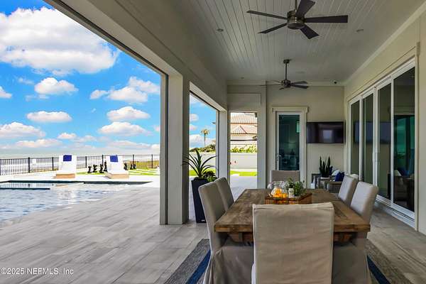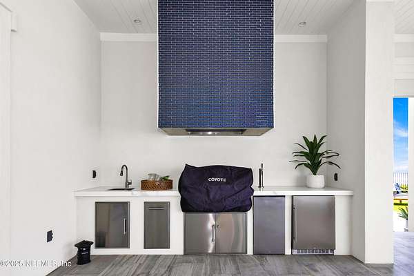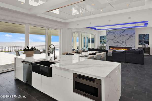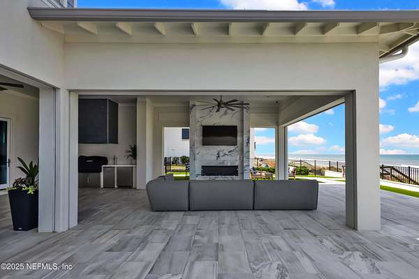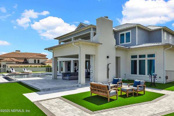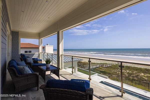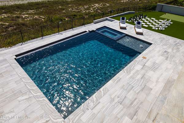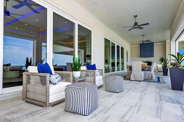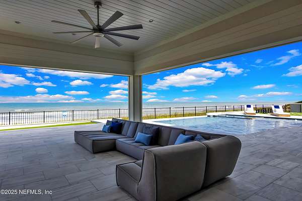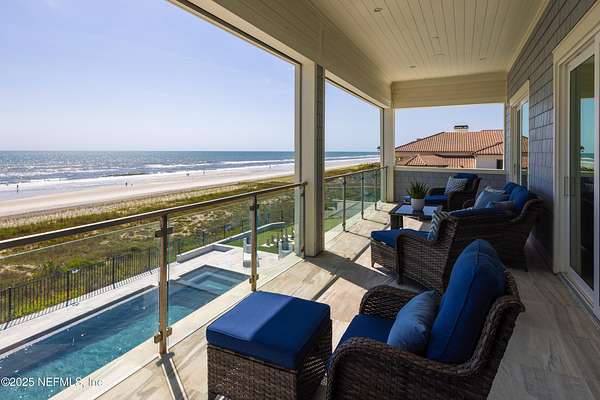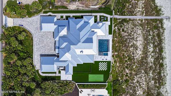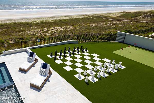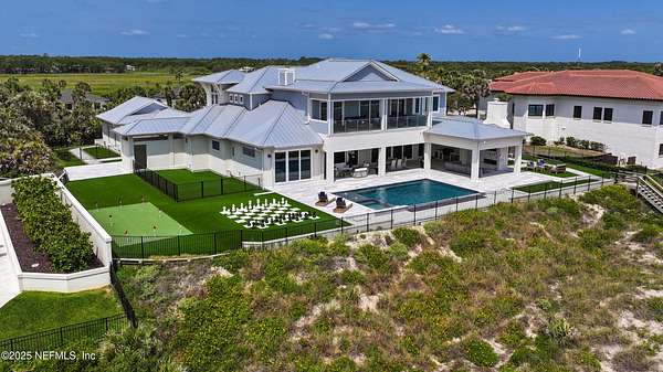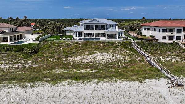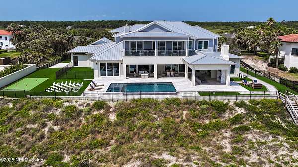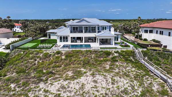 Discover the Coastal Grandeur of 1157 Ponte Vedra Blvd. Situated on 1.60 acres with 150 feet of pristine oceanfront, this 6,767-square-foot estate, designed by Kevin Gray and constructed in 2023 by the esteemed Architecture Classics, perfectly combines modern coastal elegance with state-of-the-art construction. Situated 35 feet above sea level, this 7-bedroom, 6.5-bathroom sanctuary features two versatile bonus rooms and a distinguished glass office, redefining luxury living with its stunning design. Car enthusiasts will be thrilled by this expansive 6-car garage, perfect for showcasing an extraordinary collection! Crafted for resilience, the estate combines strength with tranquility. Its construction features cinderblock, rebar, Insulated Concrete Forms, hurricane strapping, impact-resistant windows, and a standing seam metal roof, ensuring exceptional durability. An EIFS stucco system and 6-inch foam insulation provide outstanding energy efficiency. A 48KW Generac generator, Generac generator powered by a 1,000-gallon propane tank, can sustain the home for up to 10 days. At the heart of the home is a culinary masterpiece showcasing custom River City enameled white oak cabinetry, professional-grade Viking appliances, a hidden pantry, a porcelain quartz island, and a luminous quartzite bar. You'll enjoy your outdoor summer kitchen, which features a shatterproof glass tile hood, a generous gas grill, and a beer tap. This creates an inviting space for al fresco entertaining against the soothing sounds of the ocean. This modern smart home is designed for the elite, showcasing sophistication with its impressive 11.5-foot ceilings and an 8-foot porcelain quartz-clad fireplace. A Sonos surround sound system provides immersive audio throughout the space. A centralized tech center offers seamless technology integration, while the Brilliant security smart system enhances peace of mind with interior and exterior surveillance. The primary suite is a retreat of luxury and comfort. Wall-length sliding doors open to an outdoor oasis, offering breathtaking ocean views. The private, spa-like bathroom includes a four-head shower with digital heat technology and a custom luxury wardrobe. Solid wood cabinets beautifully complement the glass displays that showcase handbags and shoes. Soft LED lighting highlights each item, creating an inviting space for those with discerning tastes. Spanning 12,000 square feet, this outdoor oasis provides complete privacy for even the most discerning homeowners. It features a tranquil retreat with an infinity pool and spa, a basketball court, a putting green, a fenced dog run, and a life-sized chessboardcheckmate! You'll enjoy the cool evenings by the gas fireplace while watching your favorite movies under the stars. The exceptional construction of this home goes beyond its interior. The perimeter is reinforced with pilings, geotextile fabric, and turf to prevent sand erosion. Additionally, the rear of the home includes three concrete walls beneath the sand to ensure the property is well protected. Ideally situated on the coveted shores of Ponte Vedra Beach, this estate is more than just a residenceit represents a legacy of unparalleled craftsmanship. The homeowner will allow a Crypto purchase with our title company! Call for more details.