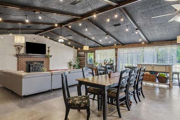 Welcome to your beautiful country-chic home that blends comfort, character, and space for the whole family! Located on a corner lot this 3800 sqft home sits on 2.69 ac with a few trees, a backyard to run and play, and a pasture for the animals. The home offers 4 spacious bedrooms plus a bonus room, 3.5 baths and the perfect balance of cozy family living and plenty of room to entertain. Step inside to discover a warm and inviting atmosphere with thoughtful details around each corner. The open kitchen-dining area, complete with a fireplace, has a large island with great workspace and storage creating a natural gathering spot for family meals and relaxed evenings. Also, the kitchen island, as well as bathroom counter tops, was crafted from reclaimed bowling alley lanes! The home features two primary bedrooms with ensuite tub-shower baths and walk-in closets and a bedroom with an ensuite half-bath. The expansive family room is an ideal setting for hosting friends and family or simply enjoying quiet nights at home by the fireplace. Outside there is plenty of parking in addition to the two-car garage and barn-workshop with electricity. This home and location, only 3 miles north of I-20 for an easy commute, offer the best of country living and convenience to town amenities. If you are looking for a house that is inviting & unique, You found it, Welcome Home!