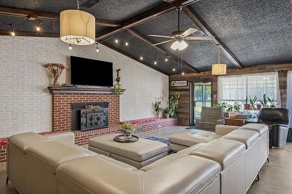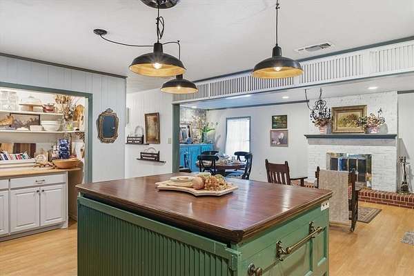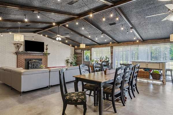 Brimming with character and creative charm, this spacious 3,800 SF brick home on 2.69 acres offers endless possibilities! Featuring 5 bedrooms, 3.5 baths, multiple living areas, and thoughtful updates throughout, it’s ideal for a multi-generational household, private retreat, or event venue. The remodeled kitchen is a showpiece—complete with a butcher-block island repurposed from a bowling alley, butler’s pantry, and plenty of storage. The living room off the kitchen brims with sweet charm and one of two WBFP. The 1,000 SF den impresses with vaulted ceilings, large brick real fireplace, stained concrete floors and antique wood boxes forming a stunning shadow-box wall. Recent upgrades include HVAC, replaced plumbing pipes, new fireplace caps, and fiber-optic internet. A separate MIL suite with outside entry provides flexibility and privacy. Enjoy ample concrete parking for groups or a large family of drivers, a 2-car carport, and an oversized 2-car garage with six storage rooms. The multipurpose shop and barn with electricity offer room for projects, inventory, or livestock—complete with a fenced pasture paddock. This property is perfect for large gatherings or weddings, this property radiates warmth and personality. The covered back patio faces an open pasture and beatufiul surroundings. The open land beside the home can be room for an additional home or parking for a venue with road frontage on two sides of this property. Just 4?miles from Canton First Monday Trade Days and within desirable Edgewood ISD—this one truly feels like home and has so much to offer!