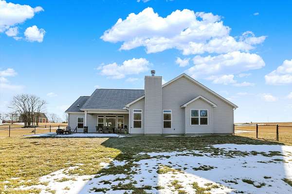 Welcome to this stunning 4 bedroom, 3.5 bathroom home nestled on a spacious 1.94 acre lot. This move in ready gem offers the perfect blend of comfort, style, and functionality. Step into the great room where an abundance of natural light and a cozy fireplace create an inviting atmosphere. The open concept layout seamlessly connects the living area to the kitchen and dining room, ideal for entertaining family and friends. The kitchen features: stainless steel appliances, quartz countertops, tile backsplash, butler's pantry, island and a large breakfast bar for casual dining. You will fall in love with the sun room featuring a vaulted ceiling, cozy fireplace and built in shelves. The primary suite is a private retreat with a luxurious en-suite bathroom boasting a spacious tile shower and double bowl vanity. Additional highlights include: Spacious 3-car garage, fenced backyard, generator, covered patio for outdoor relaxation and a mini barn for added storage. This home has been meticulously maintained and updated-it's clean, comfortable, and truly move-in ready. Don't miss your chance to make it yours! Schedule your private showing today!