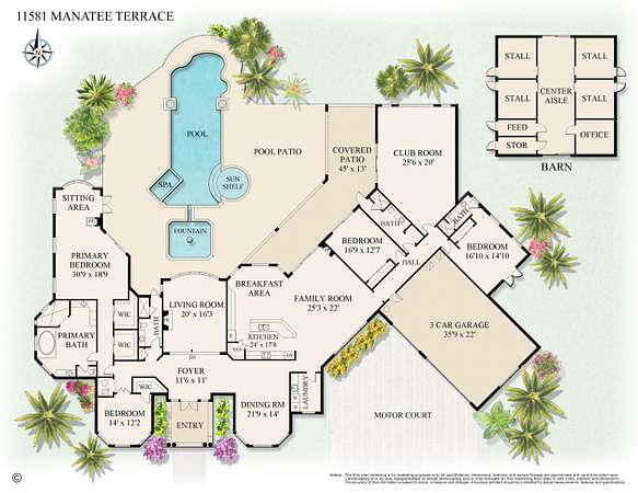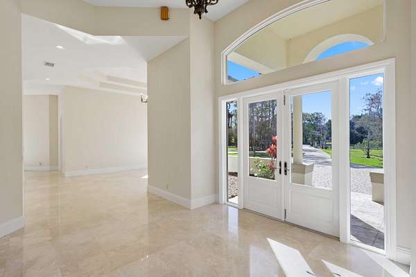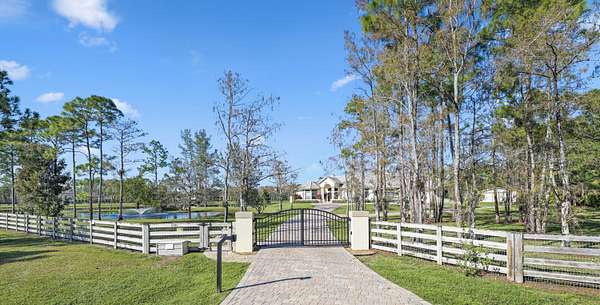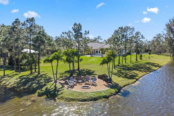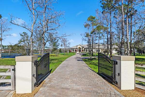 MULTI-USE, PRISTINE 5-ACRE POINT LOT surrounded by water, offering exceptional privacy and serene natural beauty. Gated entry opens to sweeping views, gentle breezes, and a peaceful setting with abundant wildlifea"creating a true retreat-like atmosphere. Exceptional, sprawling ranch with high ceilings, large rooms, marble floors, large primary with sitting room and fireplace. Notable features include a whole-house generator, reverse-osmosis water treatment system, new ACs, new hot water heaters and a newly converted salt-chlorinated pool and spa positioned to take full advantage of the tranquil waterfront surroundings. Equestrian and animal enthusiasts will appreciate the newly built, multi-use barn with 4 stalls, electric, water, and partial A/C, suitable for private use or CONTINUE