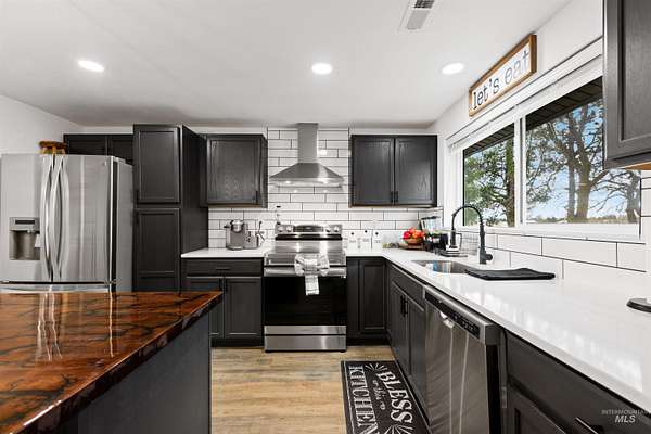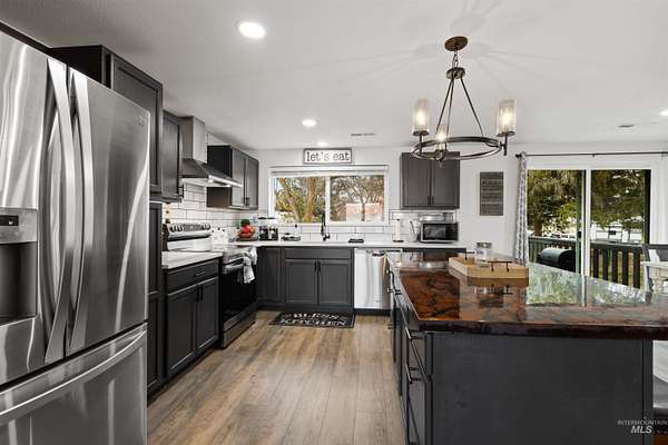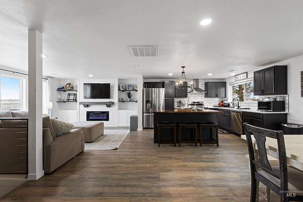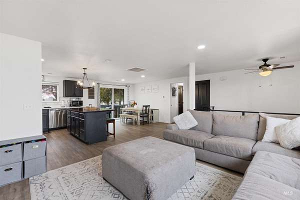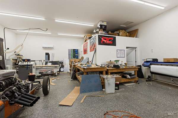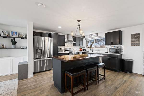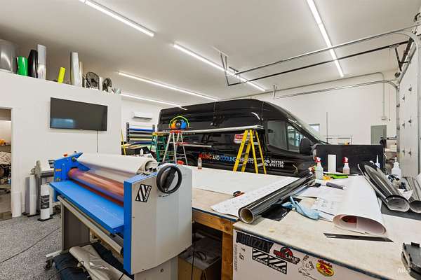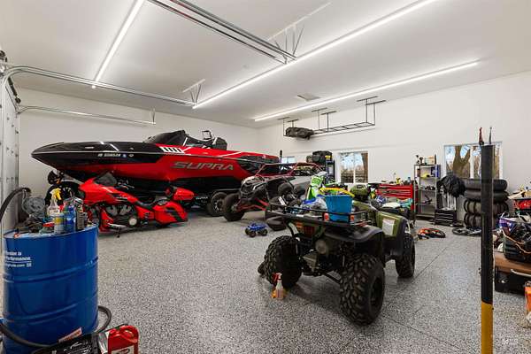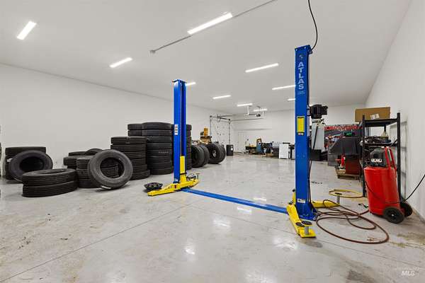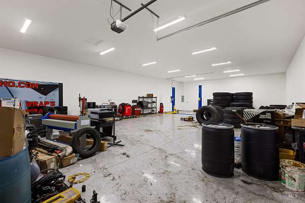 Rare opportunity to own a newly renovated home with income-producing shops, business flexibility, and space to live the rural lifestyle - all in one property. The open-concept design features an oversized primary suite with ensuite bath, dual closets, and a beautifully updated kitchen with custom cabinetry, quartz and wood countertops. A separate lower-level living area offers additional space for entertaining or multi-generational living. Set on county land with no HOA or CCRs, this property provides room to grow, farm, or keep animals, plus water rights along the western boundary. Three fully finished shops include a 24x60 with lift, 24x60 two-bay with bathroom, heat and AC, and a 30x40 heated/cooled shop - all with epoxied floors. Temporary commercial operating permit in place with approximately $7,500/month rental income potential. Circular driveway allows for semi and delivery access, with privacy fencing separating residential and business areas if desired.