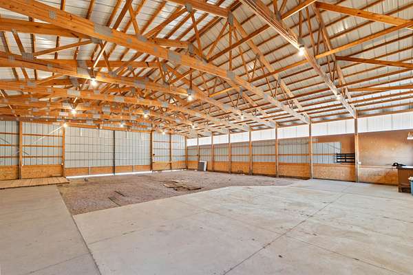 - Barn, Corral/Stable, Fence Metal, Garden Area, Horses Allowed, Lawn, Outbuildings, Outdoor Lighting, Partial Fence, Shed, Unpaved Street