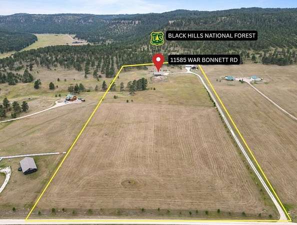 Picturesque 20.71-acre ranchette located off of War Bonnet Road just minutes west of Custer and directly next to thousands of acres of BHNF land with views straight out of a magazine! This customized property includes the spacious 4-bedroom, 3-bathroom, 3000+ square foot home beautifully finished with Hardwood and Tile Floors, Pine covered ceilings, natural Slate surrounded fireplaces, and an open main area floorplan. Adjacent to the custom home and through the covered breezeway sits the oversized 3 car garage with concrete surfaces all around. A few steps away are the 8x16 "Chicken Condo" and 10x20 Greenhouse with additional outside garden areas. Then we must talk about the Morton pole barn space for all your toys and critters. This 60x66 space is wide open inside to make the possibilities quite numerous. 12-foot-high doors on either end, separate animal stall doors on the side with outside fenced stalls, a separate tack/feed room, concrete surfaces, water, and power are all included. All this and situated on 20.71 native grass covered acres of the Southern Black Hills. Truly a property that lends itself to many different types of buyers, with many different items on their wish lists. Did I mention the backup handpump on the well in case of a no power situation?