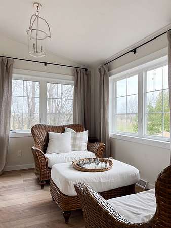 Est $3,214/moNestled at the end of a private drive on 4 serene acres, this 2021 built home blends modern finishes, marble counters, natural stone tile, with rustic charm from original 1960s Door County Dutch summer cottage logs and beams. Located minutes from Ellison Bay, Sister Bay, and Lake Michigan, this 2 bed, 1 bath retreat offers both seclusion and convenience. Offered fully furnished by professional designer and turnkey, it's ideal as a year-round home, vacation getaway, or rental. A Generac generator (2023) adds peace of mind. Showings by appointment only. Please respect privacy with no drive-throughs.